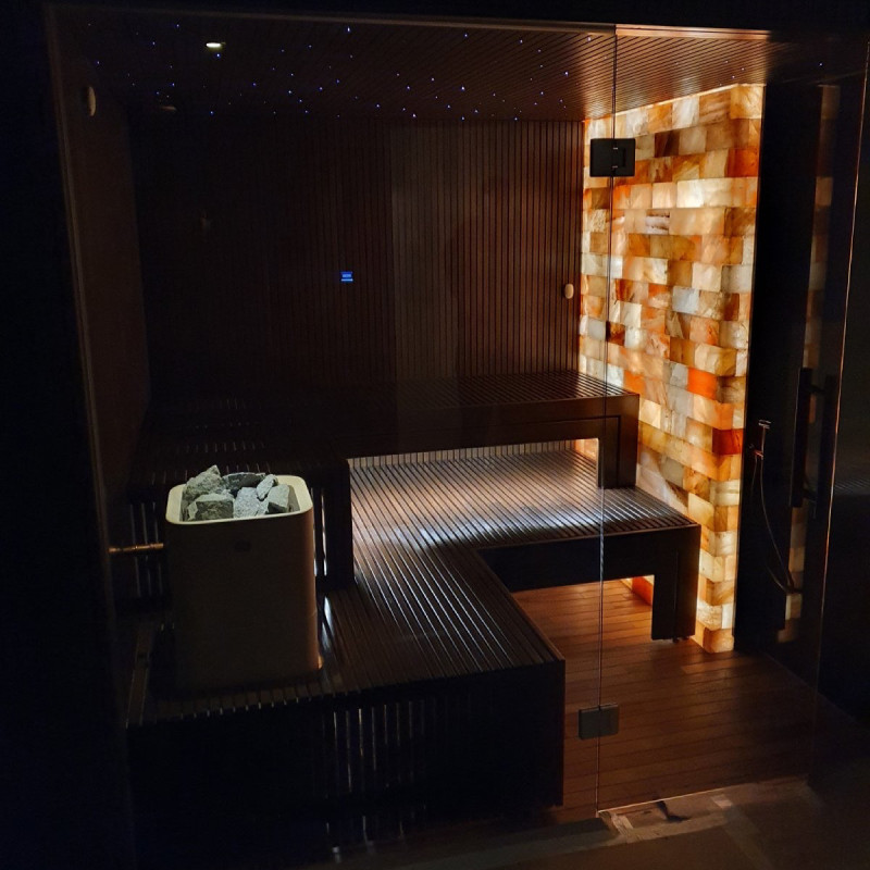 Cărămizile de sare de Himalaya alese pentru decorarea saunei cu iluminare încorporată creează un mediu confortabil și sporesc și mai mult efectul saunei. Pietrele de sare de Himalaya sunt un ionizator natural care îmbunătățește eficient calitatea aerului prin emiterea de ioni negativi. Aerul ionizat negativ îmbunătățește sănătatea, ajută la tratarea multor afecțiuni precum: astm bronșic, boli pulmonare și bronșice, postinfarct, hipertensiune arterială, ulcere gastro-intestinale, gastrite, boli tiroidiene, dermatite, diverse alergii, boli nervoase, ajută la depășirea accidentului vascular cerebral. Beneficiile efectuării procedurilor într-o astfel de saună vor fi duble.