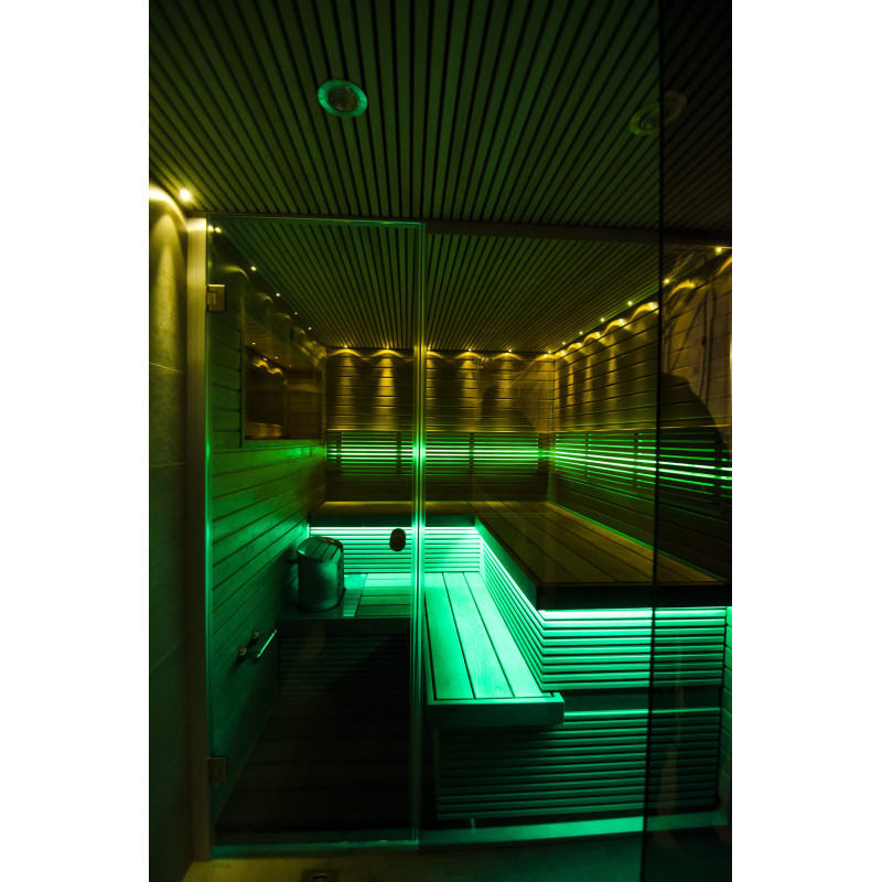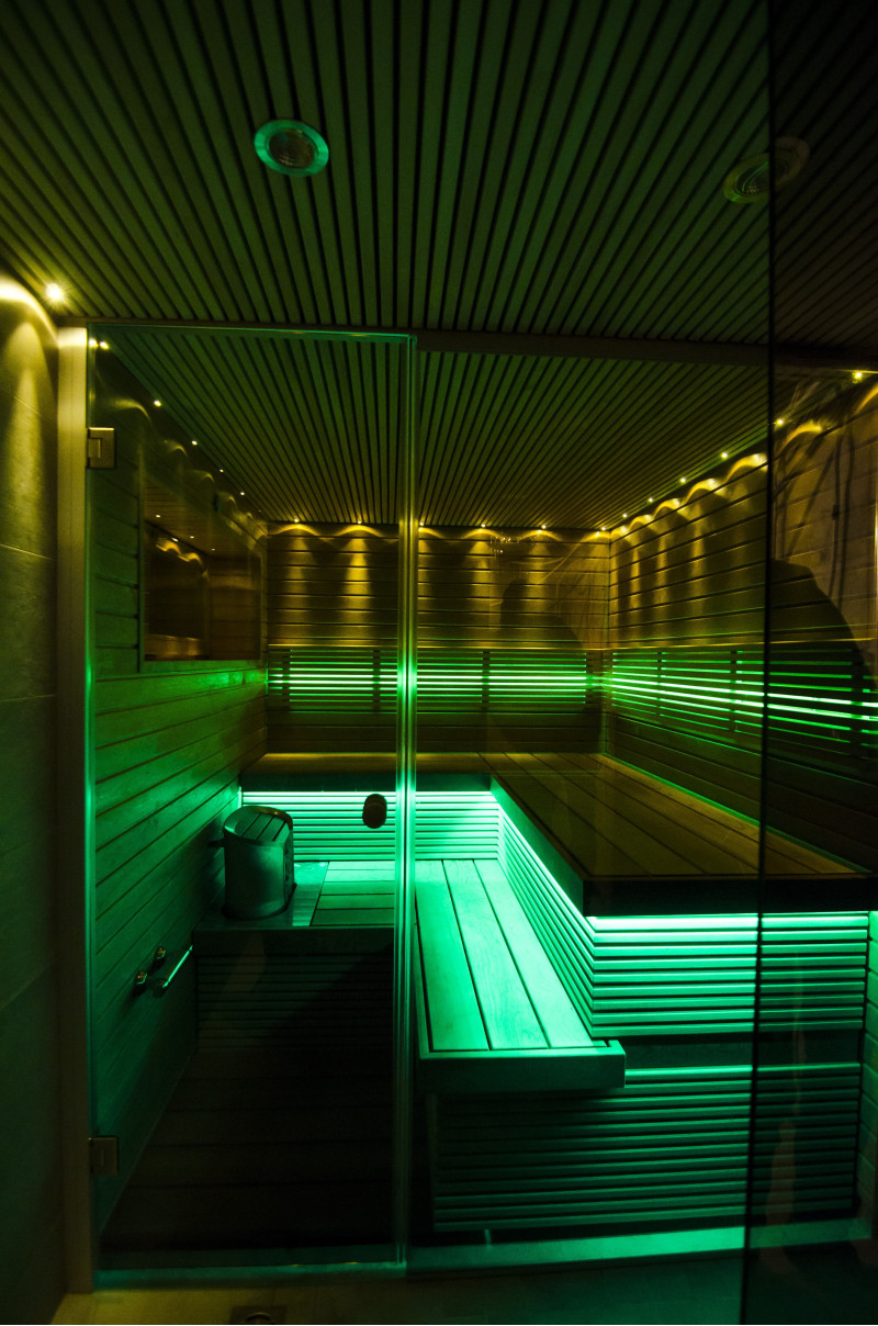 Pe tavan - iluminare LED „Luna”. Sub șezlonguri și în spătare, există iluminare RGB colorată controlată de un schimbător de culori wireless.