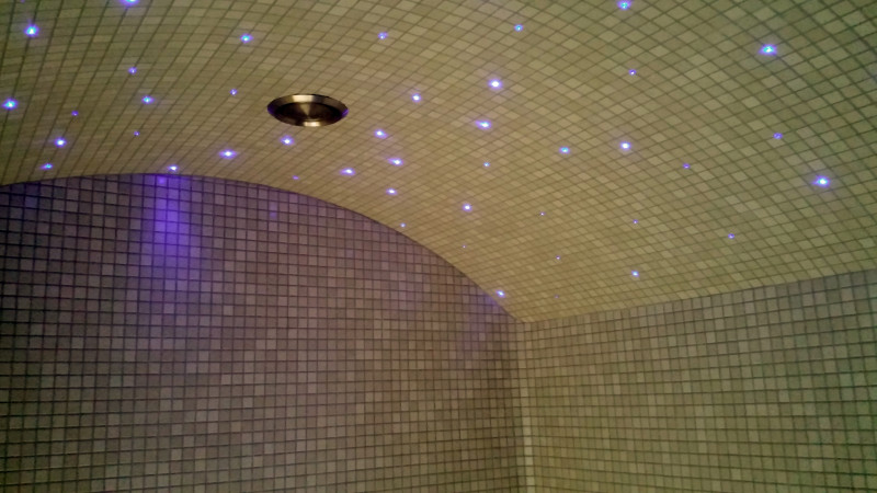 Sistemul de iluminat este „cer înstelat”. Acest iluminat creează o priveliște impresionantă și confortabilă în sauna cu aburi. Sub șezlonguri există iluminare pentru a ilumina podeaua.