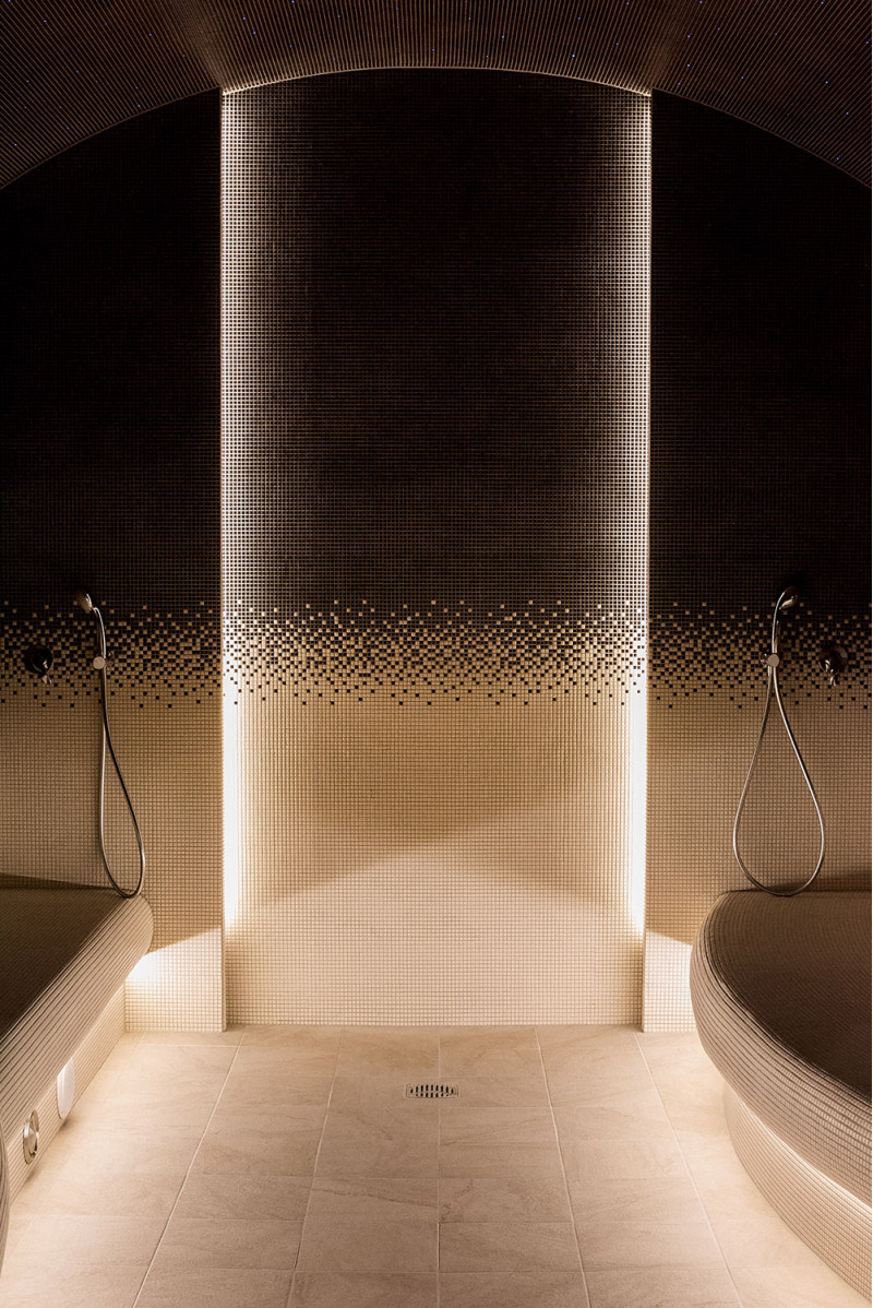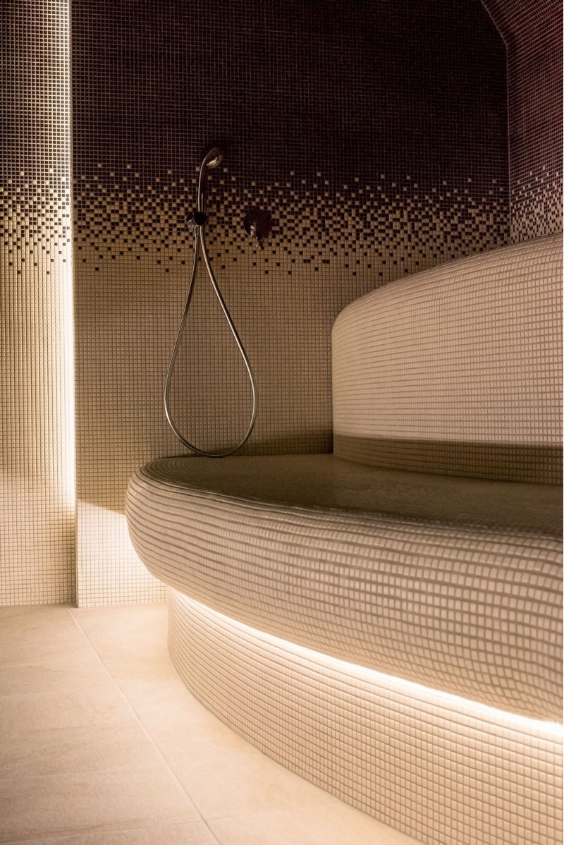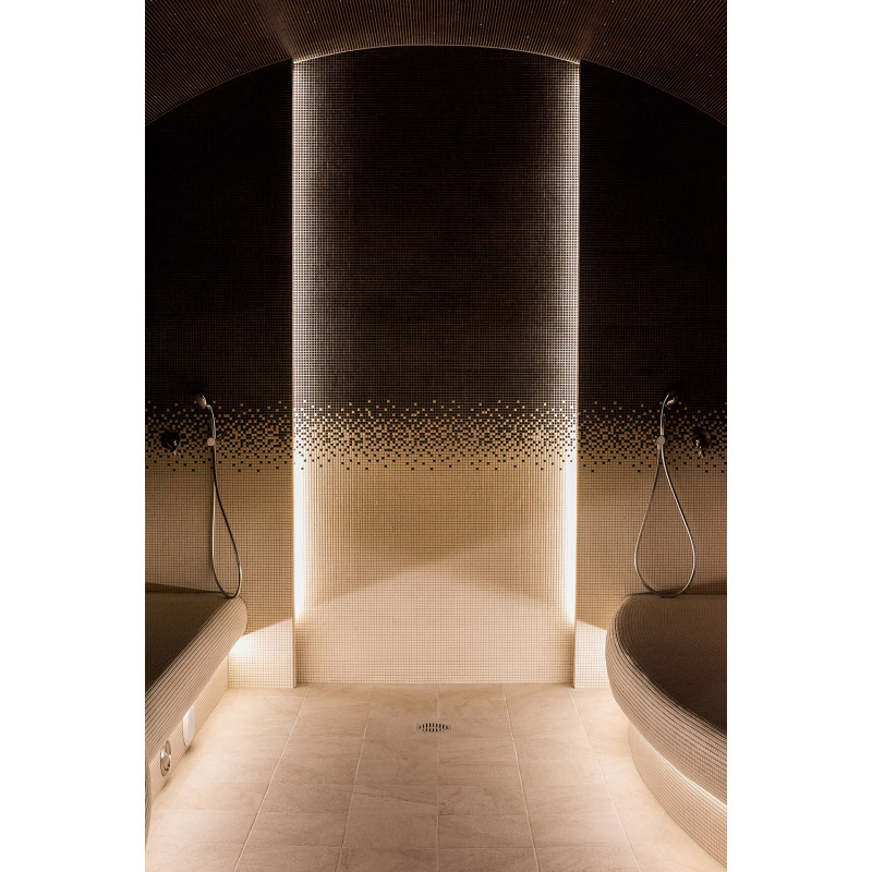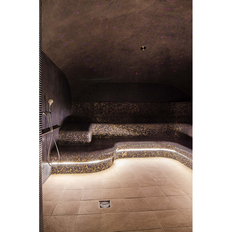 - Corpurile de iluminat rezistente la umiditate și temperatură sunt instalate sub paturi. Iluminarea cu LED este instalată în spatele peretelui de sare din Himalaya.
