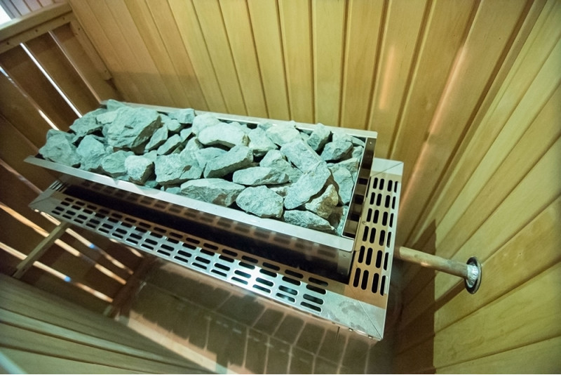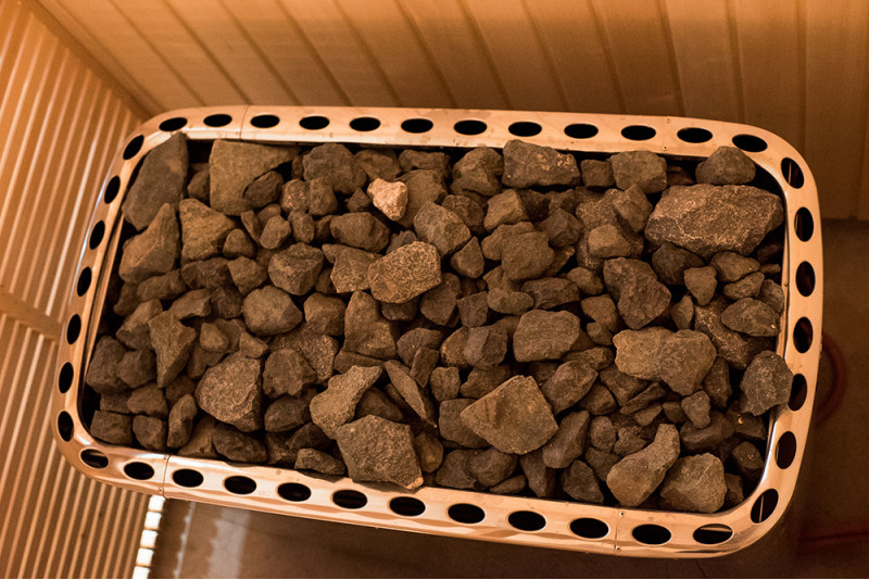 - Aragazul este umplut cu 80 kg de pietre pentru saună.