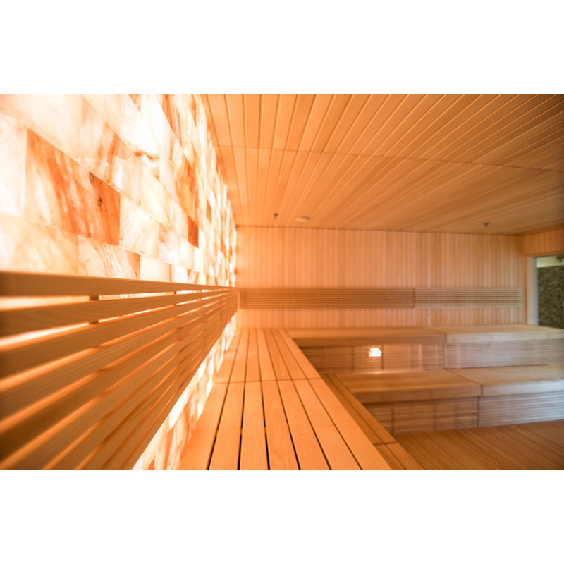 Cărămizile de sare din Himalaya selectate pentru decorarea pereților saunei cu iluminare încorporată creează o atmosferă confortabilă și sporesc și mai mult efectul saunei. Sărurile din Himalaya sunt un ionizator natural care îmbunătățește în mod eficient calitatea aerului prin emiterea de ioni negativi. Aerul ionizat negativ îmbunătățește sănătatea, ajută la tratarea multor afecțiuni precum: astm bronșic, boli pulmonare și bronșice, postinfarct, hipertensiune arterială, ulcere gastrointestinale, gastrită, boli tiroidiene, dermatite, diverse alergii, boli nervoase, ajută la depășirea accidentului vascular cerebral. Utilizarea unei saune într-o saună cu săruri din Himalaya are două avantaje.