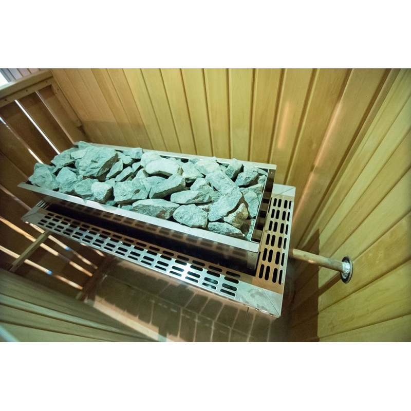 - Sauna este încălzită de un încălzitor electric - Harvia Profi. Acest încălzitor este proiectat pentru cele mai mari băi publice. Construcție extrem de puternică din oțel inoxidabil.