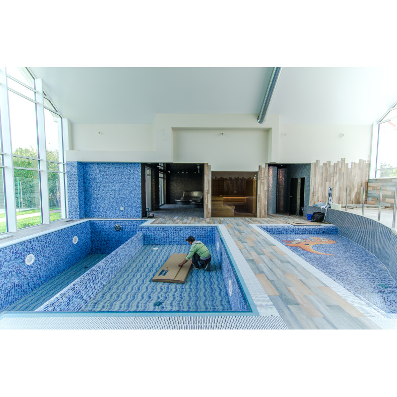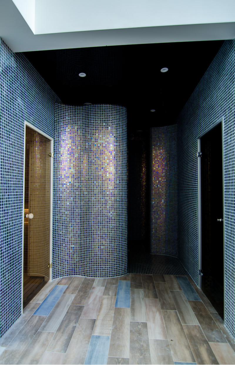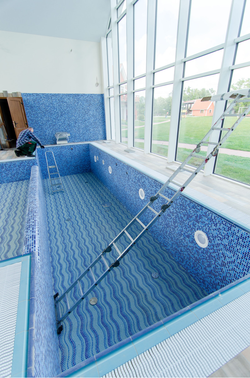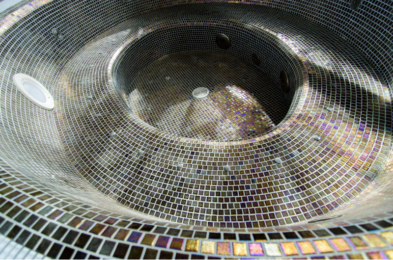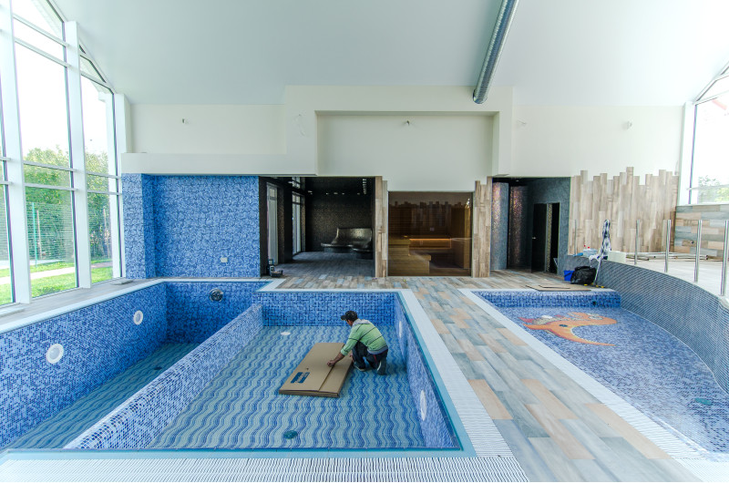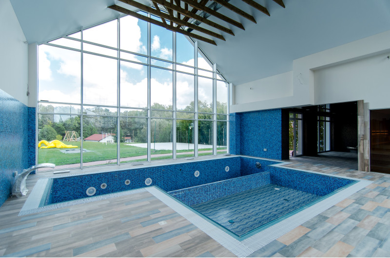 Piscina cu hidromasaj - 8 locuri. Dotat cu beton. Interiorul este acoperit cu mozaic. Corp de iluminat LED subacvatic, jeturi de masaj, echipamente de filtrare, echipamente automate de dozare chimica.