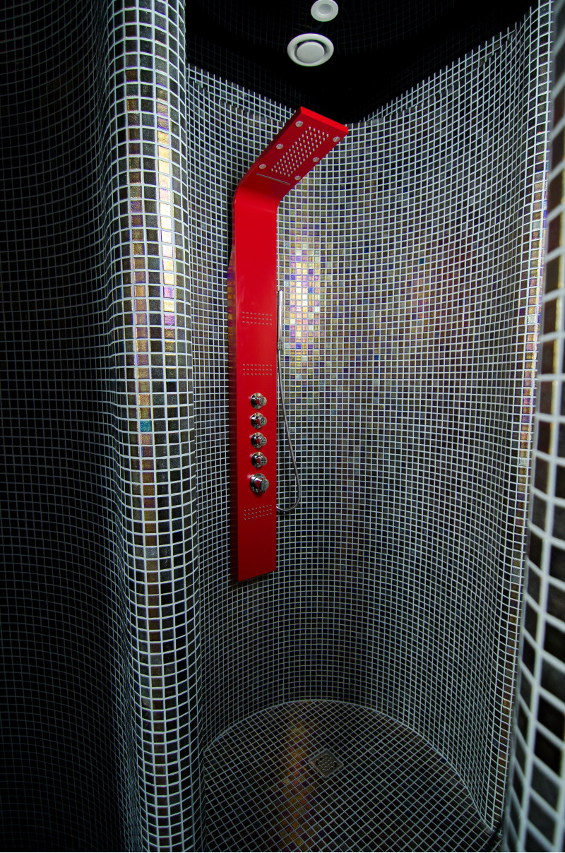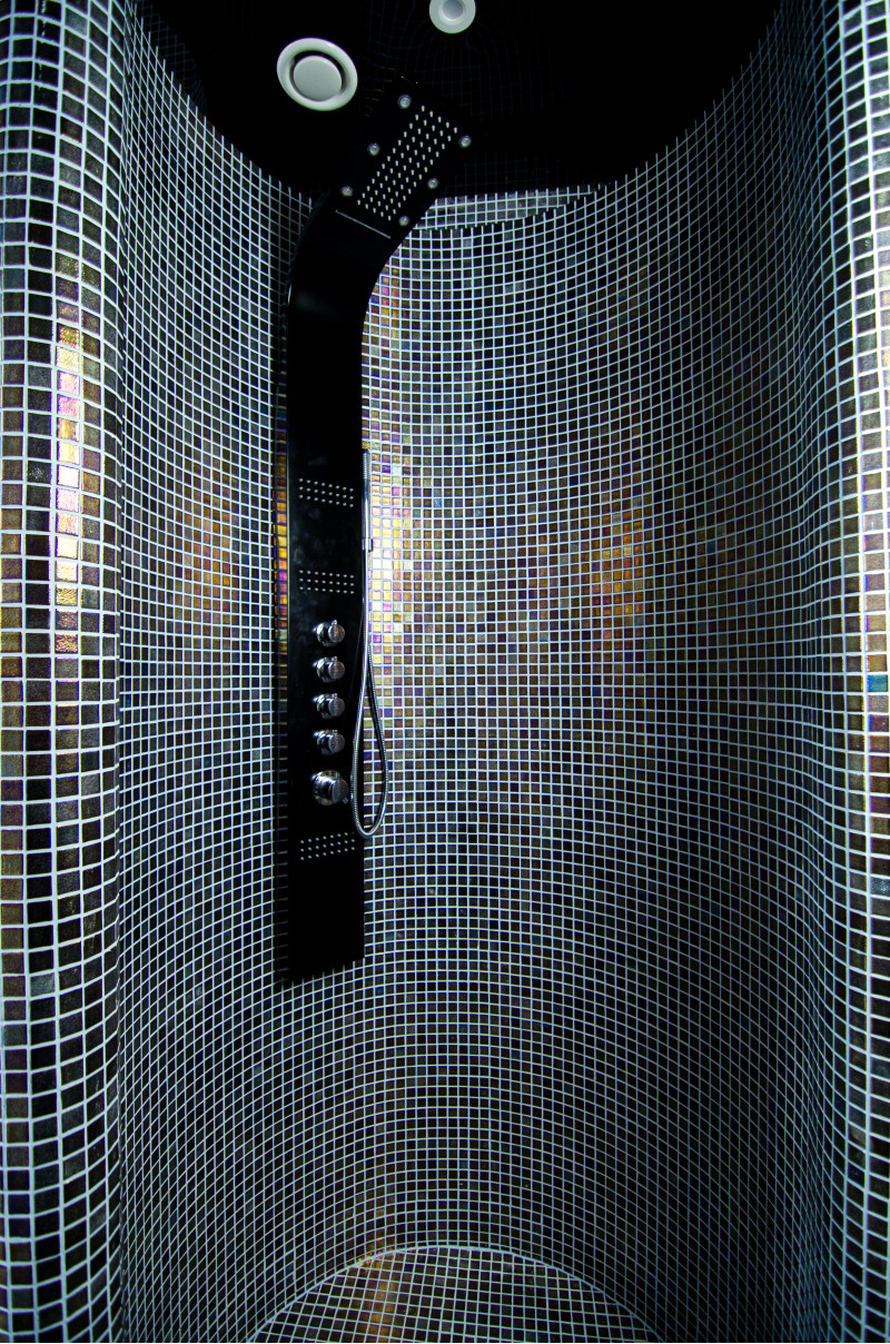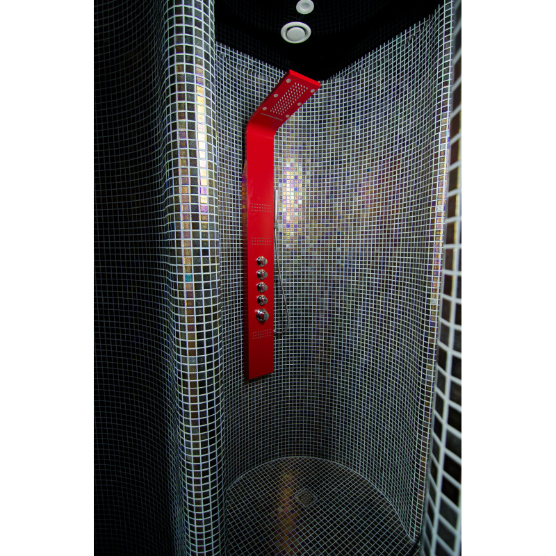 3 dusuri curbate. Echipat cu cabine de dus rotunde cu armare si hidroizolatie. Unul dintre dușuri are o găleată de stejar cu o inserție de plastic.