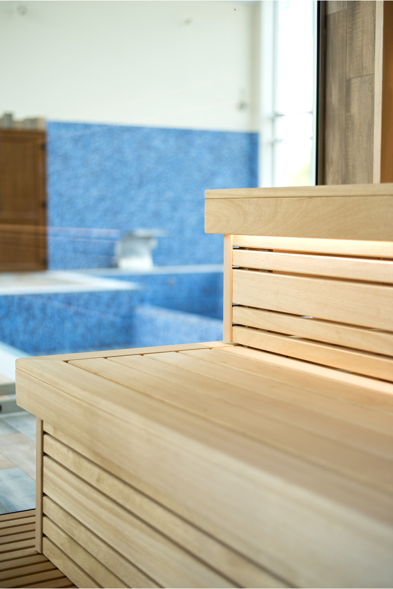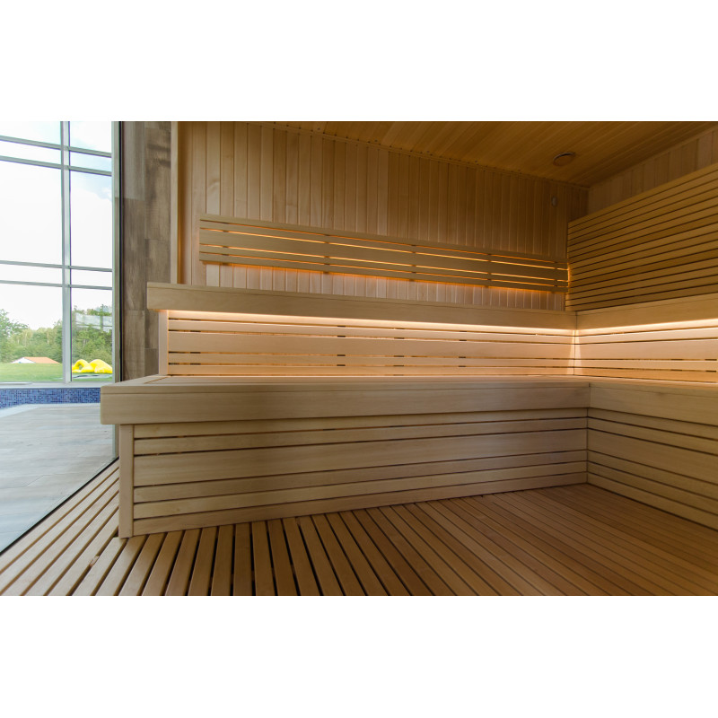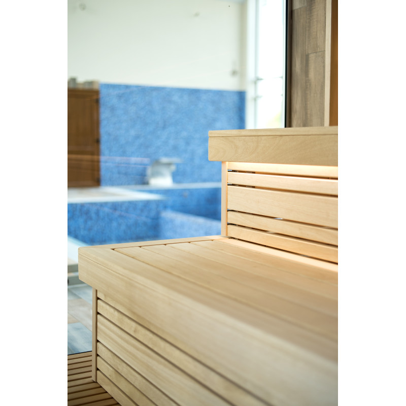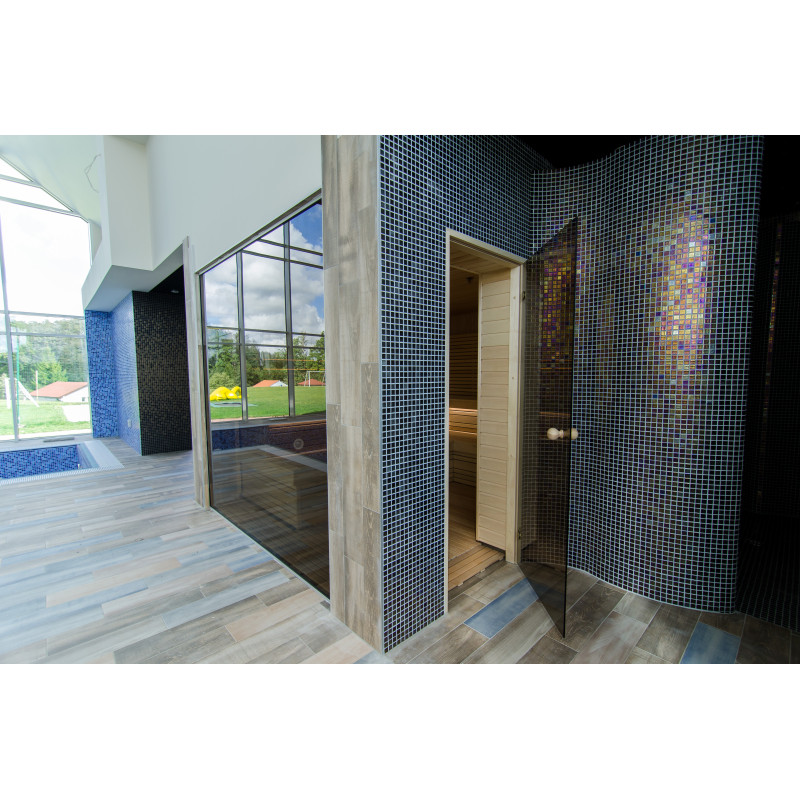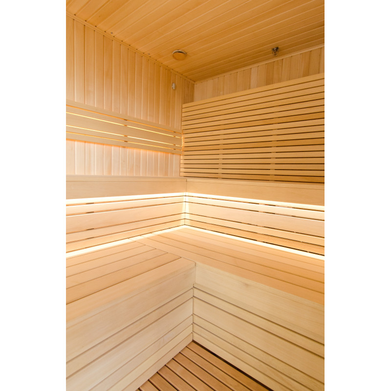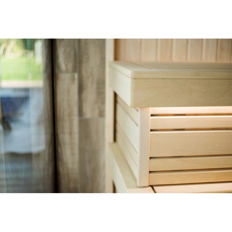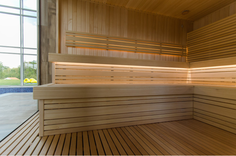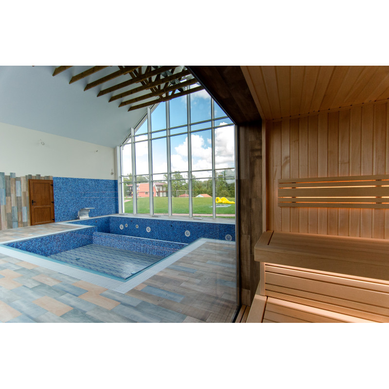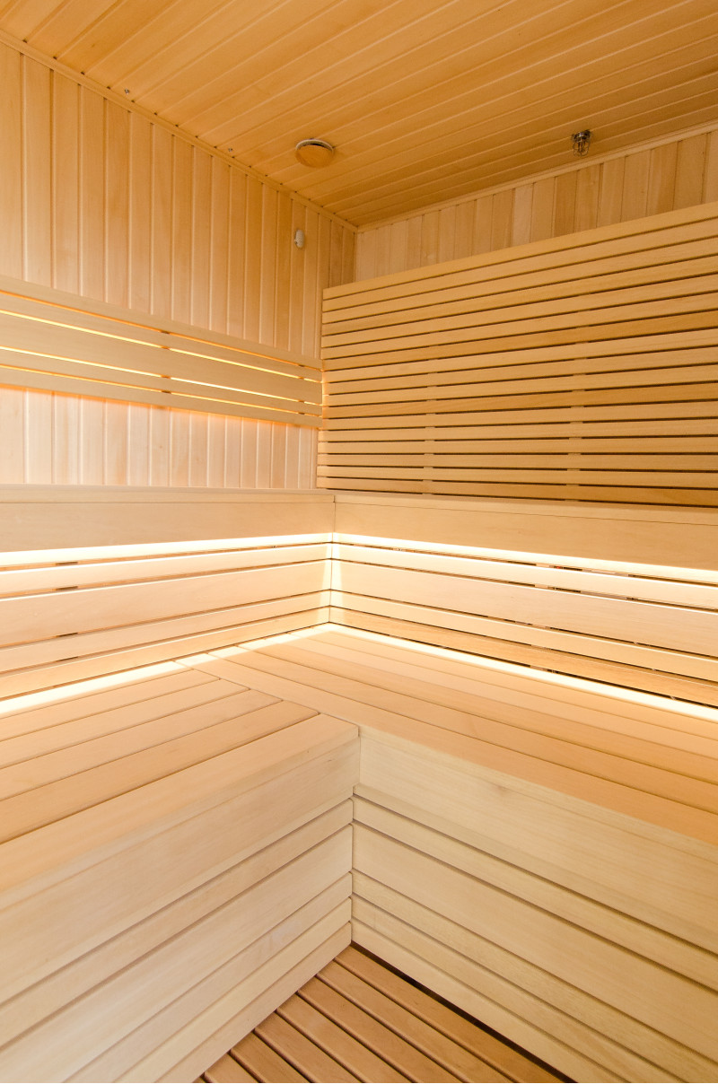 Sauna. Detaliile interioare din lemn ale saunei sunt din lemn de abachi, tavanul si peretii sunt din lemn de iulie. Caracteristici: