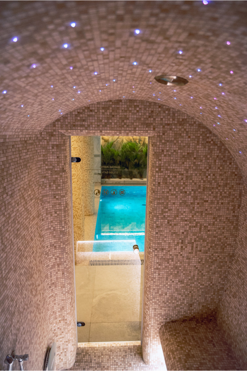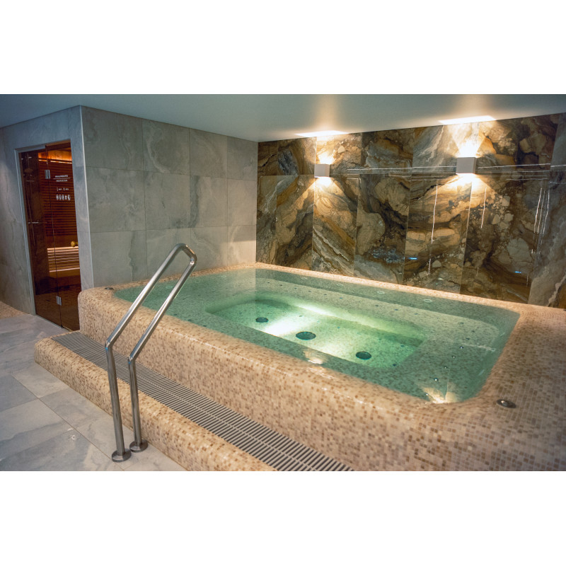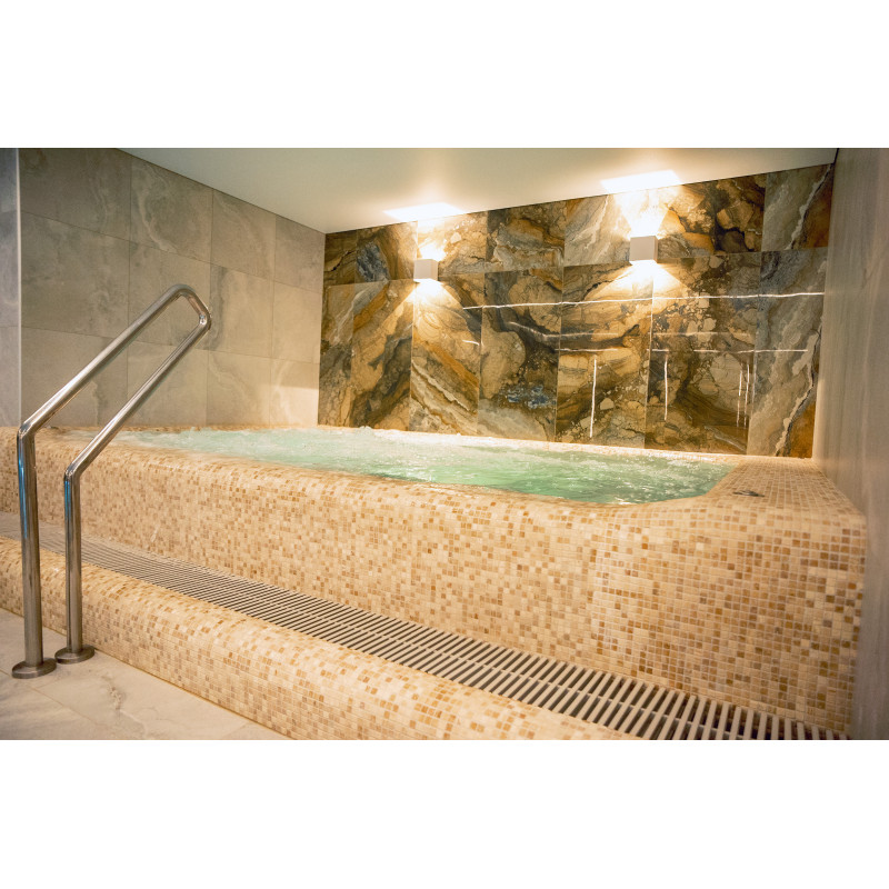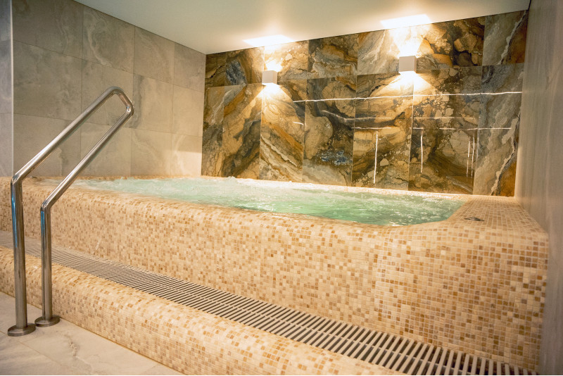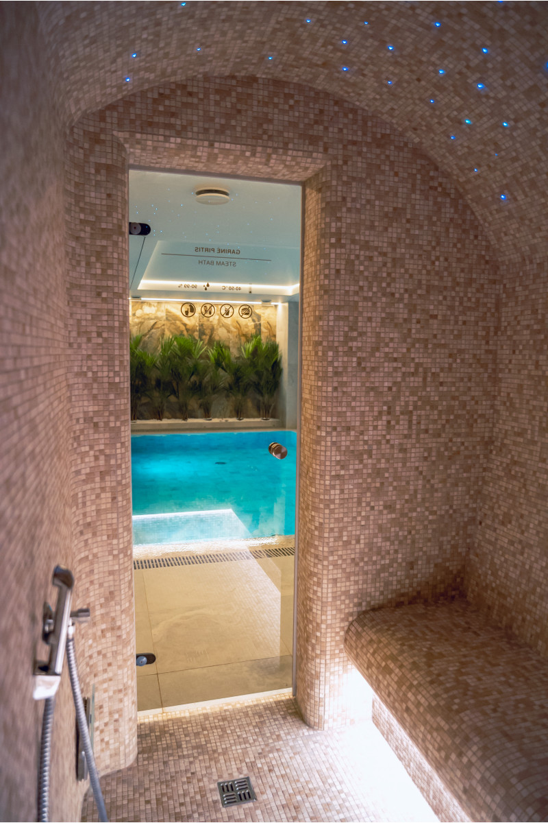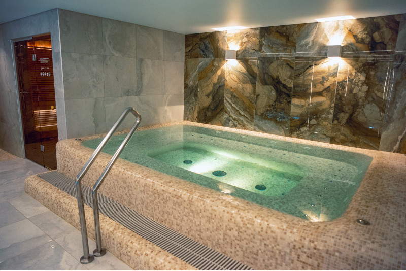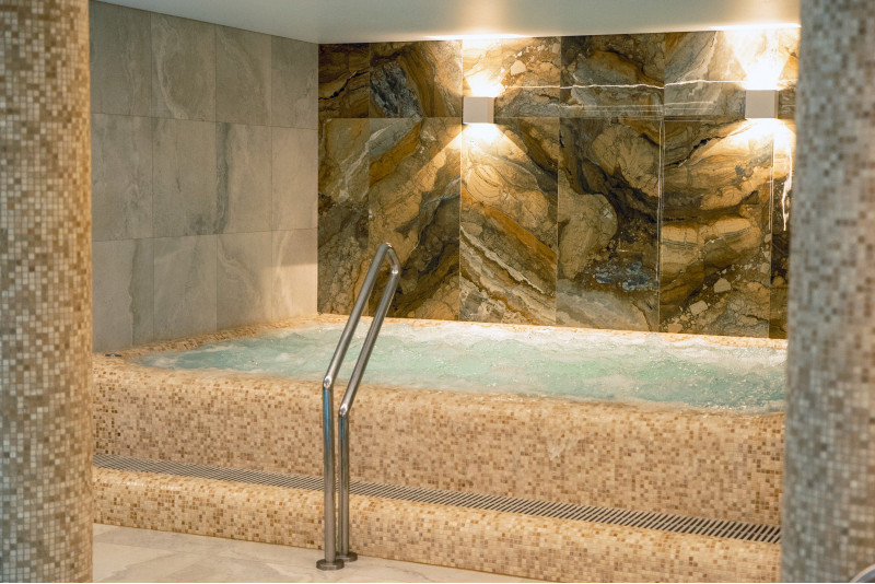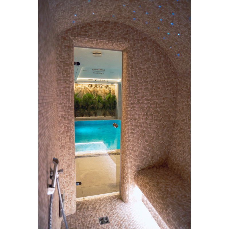 Complexul include o baie de aburi, o saună, un generator de gheață și o piscină cu jet de masaj și cadă cu hidromasaj.