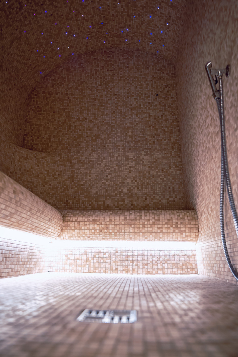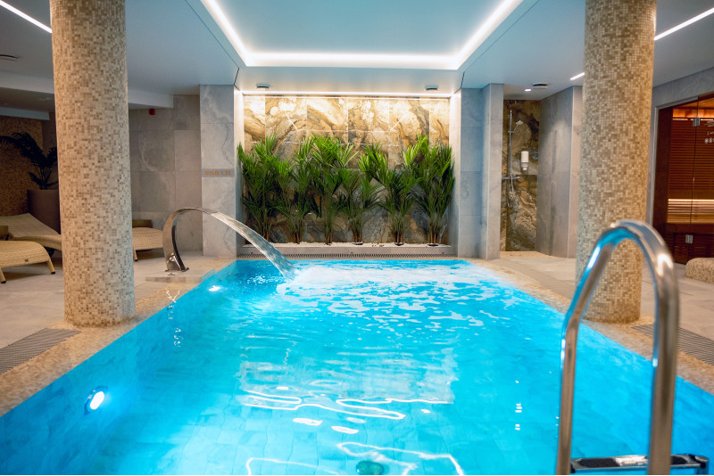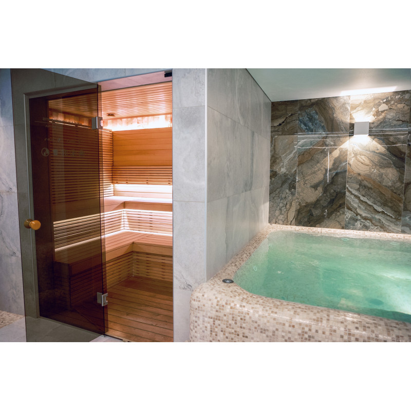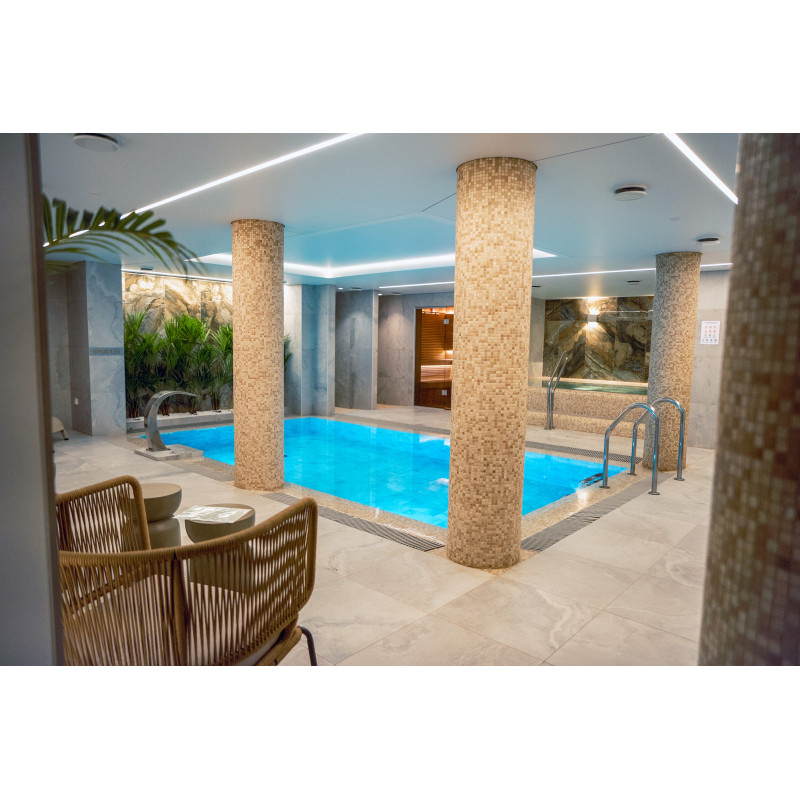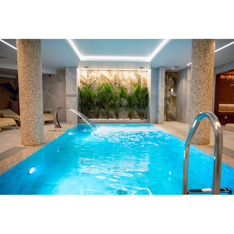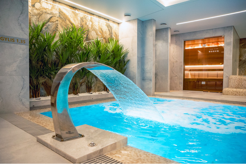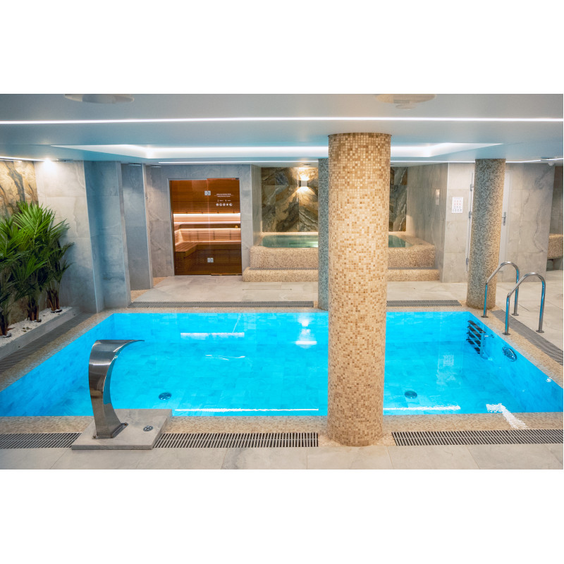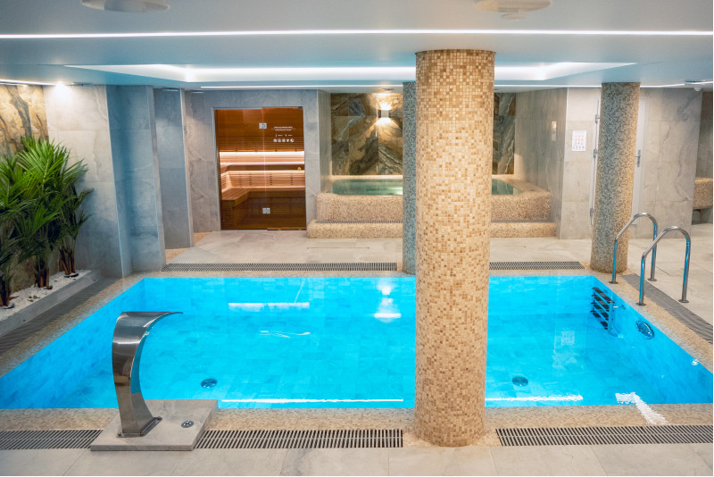 Complexul include o baie de aburi, o saună, un generator de gheață și o piscină cu jet de masaj și cadă cu hidromasaj.