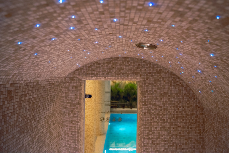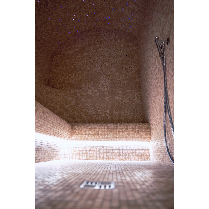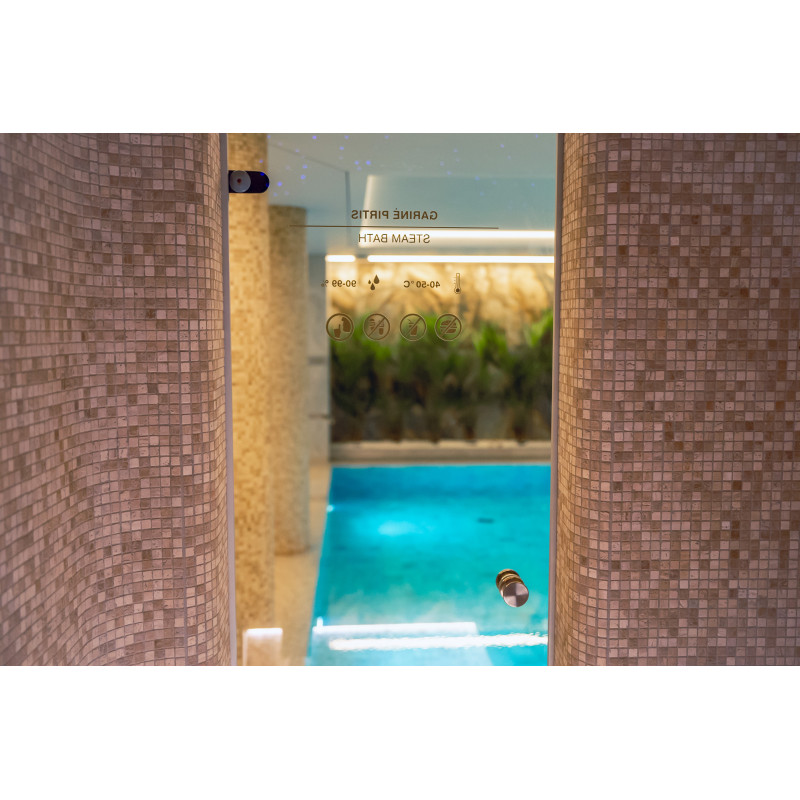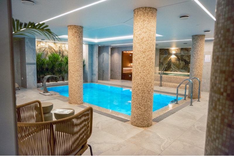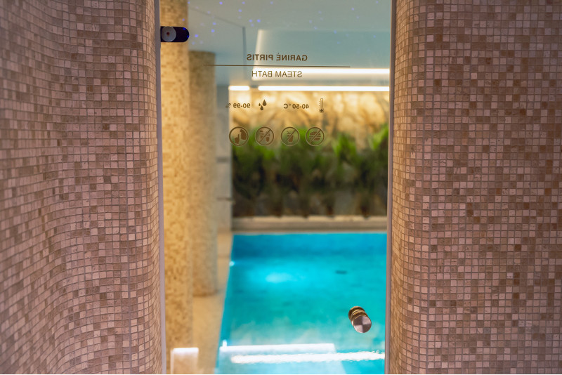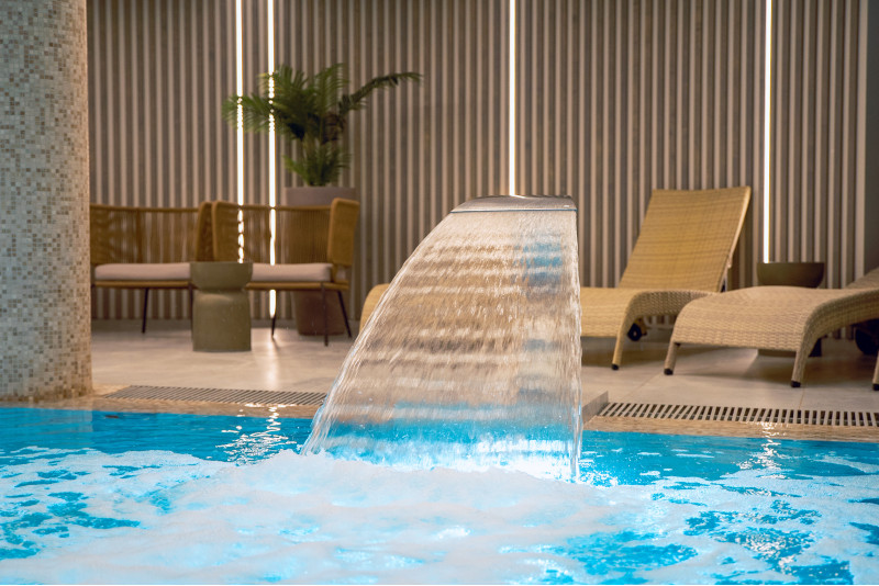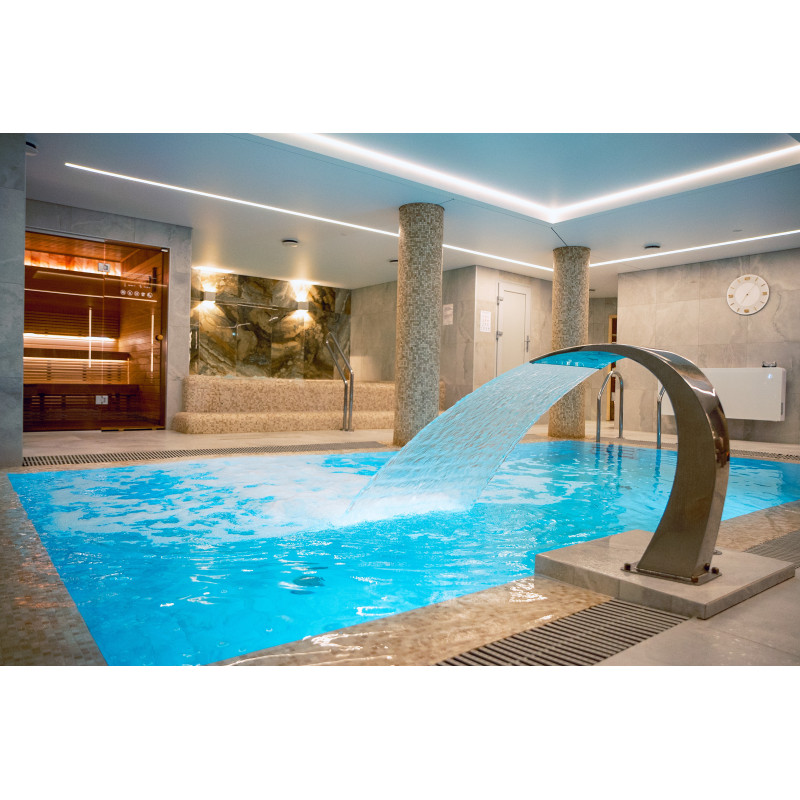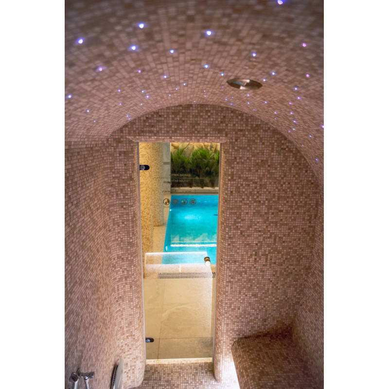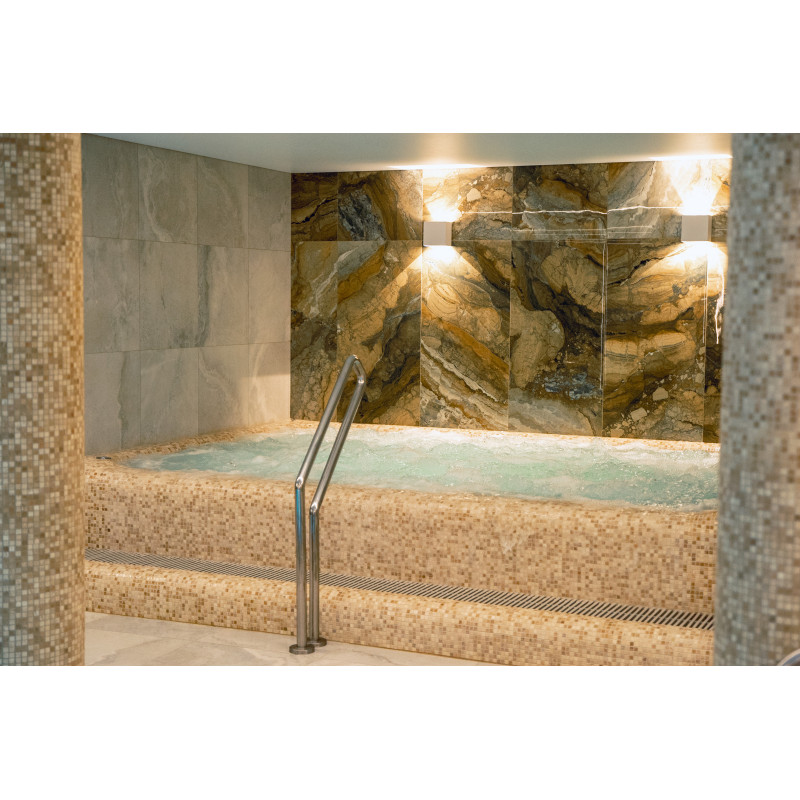 Complexul include o baie de aburi, o saună, un generator de gheață și o piscină cu jet de masaj și cadă cu hidromasaj.