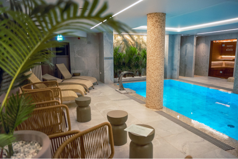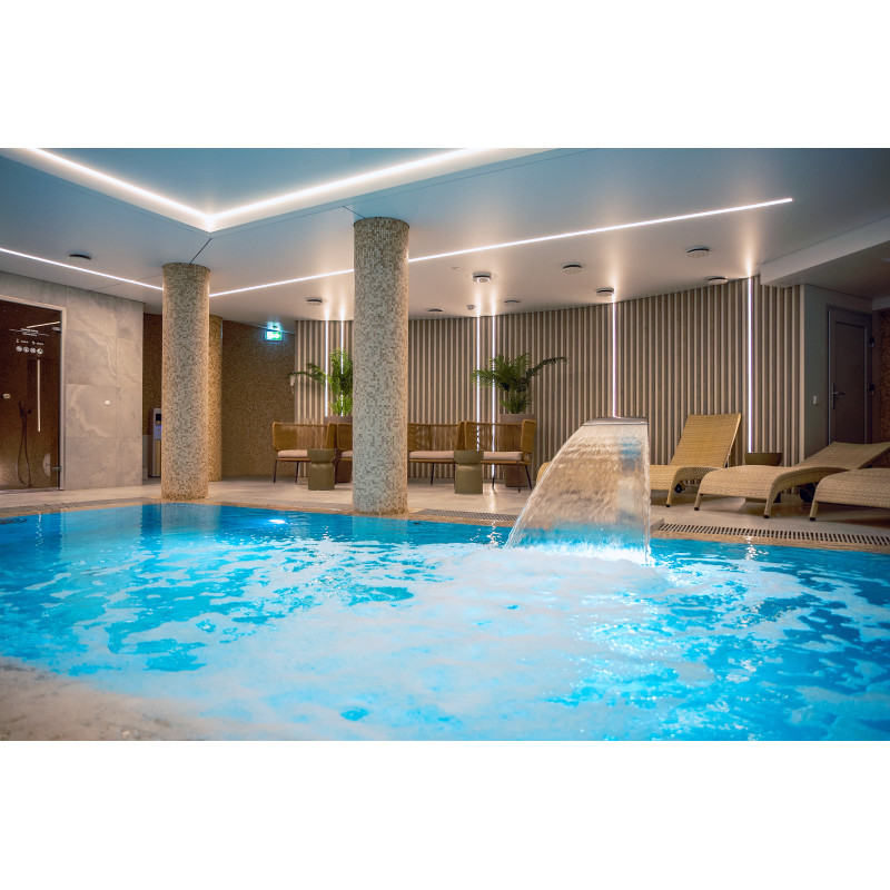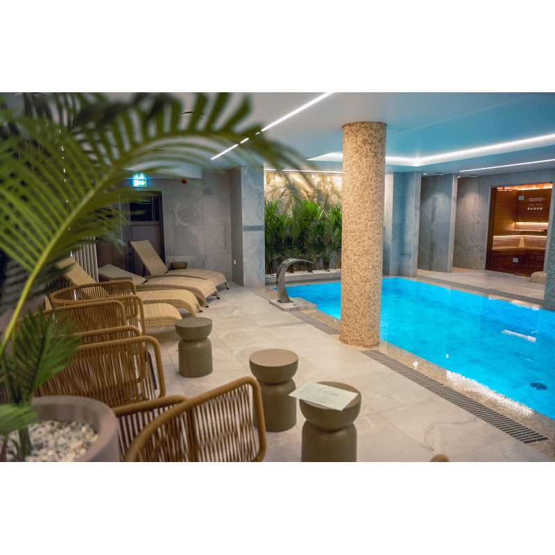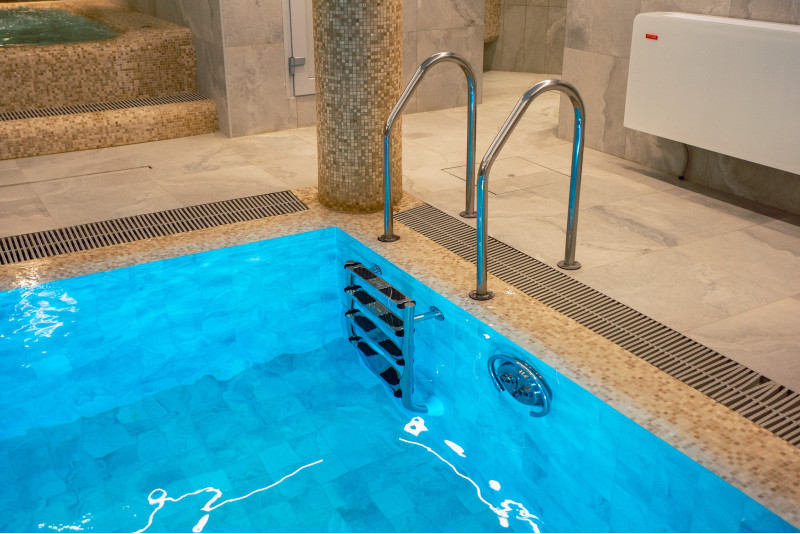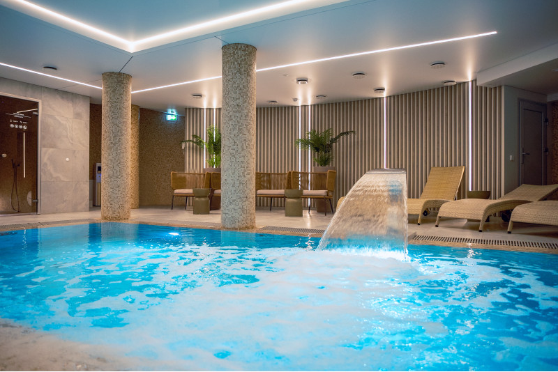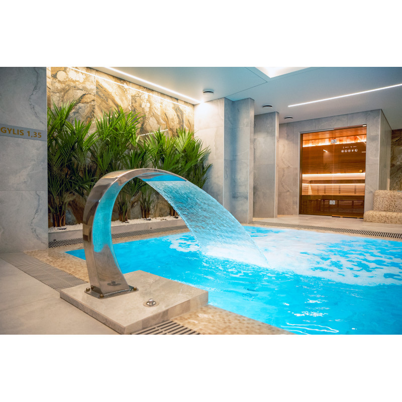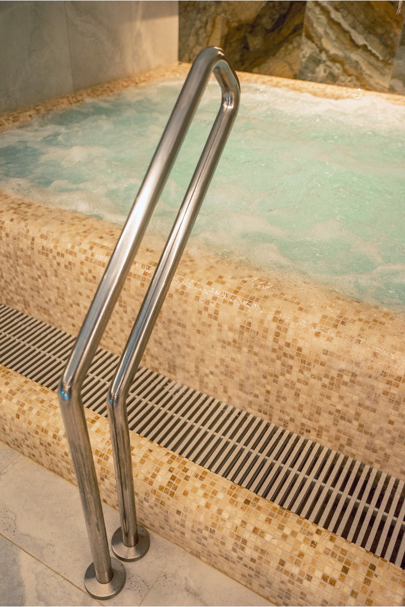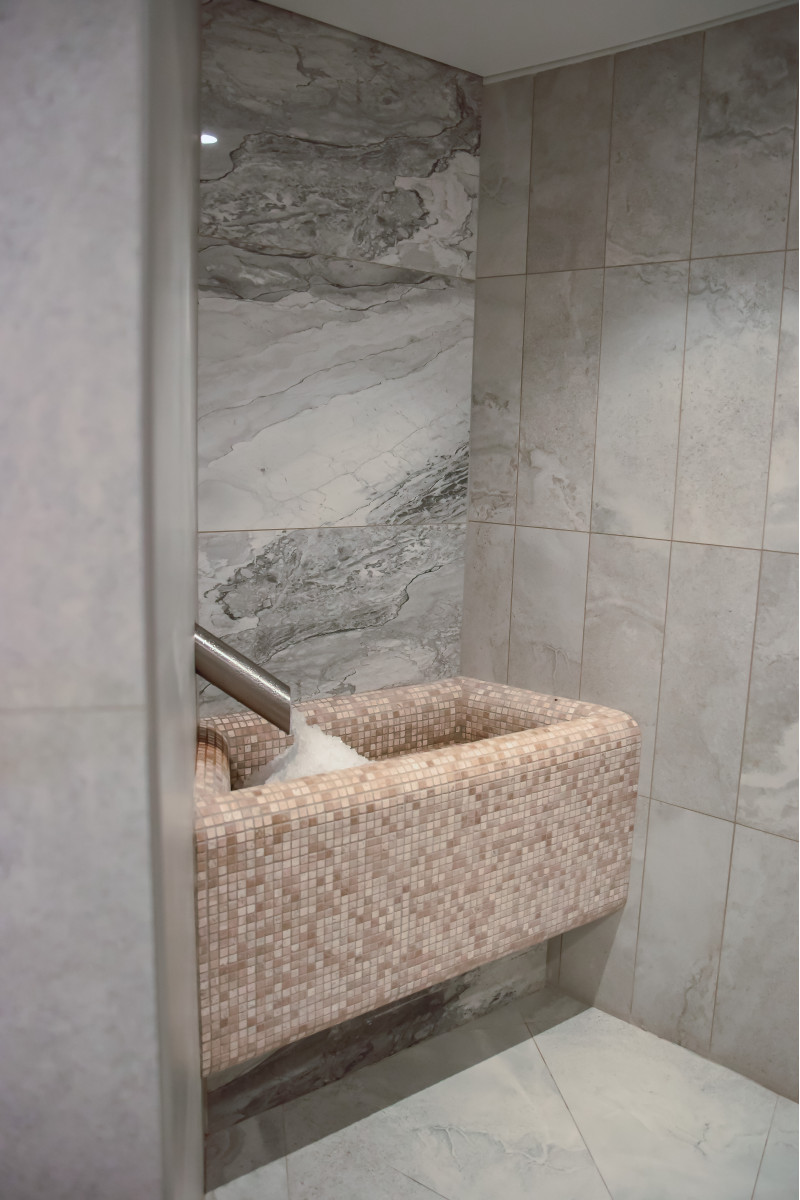 Complexul include o baie de aburi, o saună, un generator de gheață și o piscină cu jet de masaj și cadă cu hidromasaj.