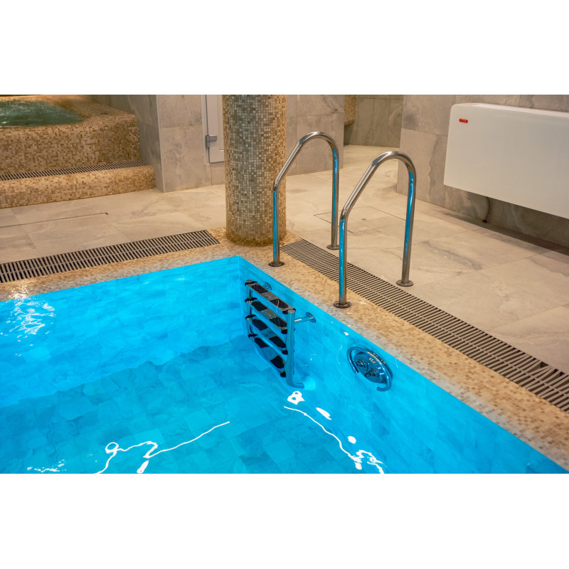 Piscina este echipată cu un jet de înot Taifun Duo, complet cu pompă, balustradă, conducte și control pneumatic.