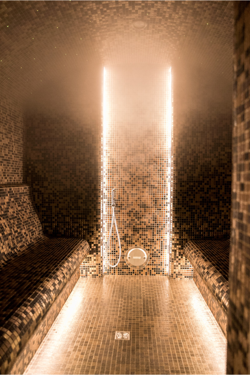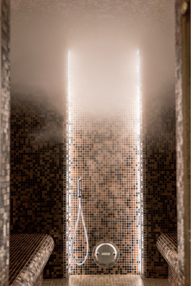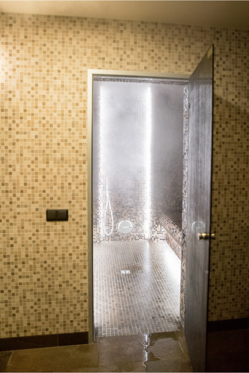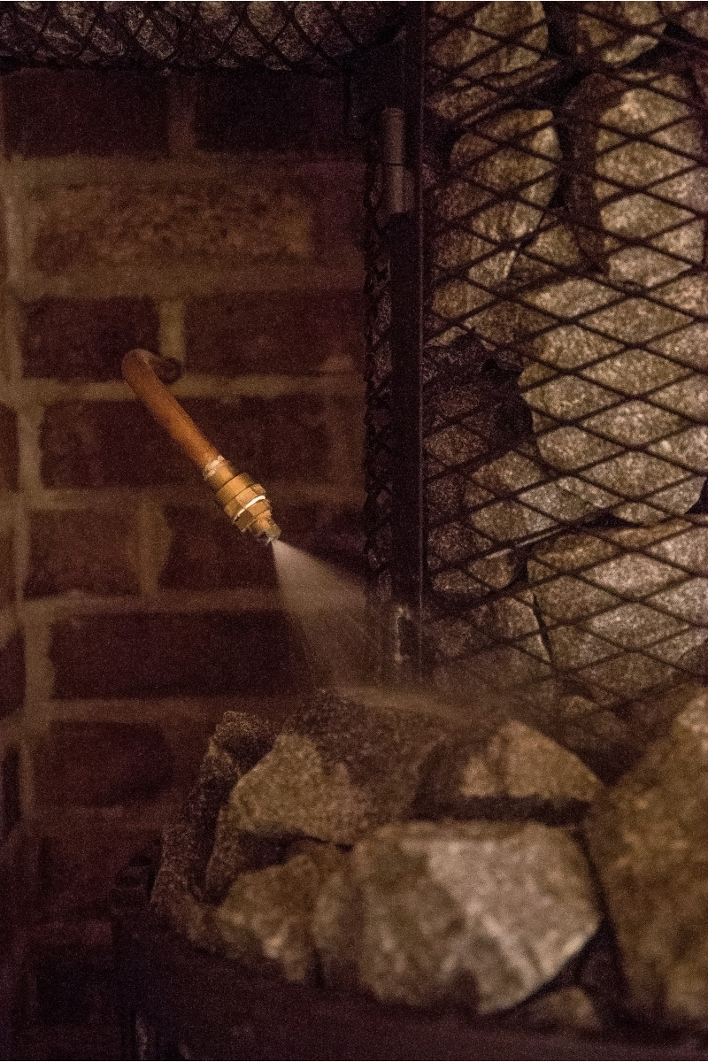 Există un sistem automat de umplere cu apă pe pietre și un sistem automat de parfumare.
