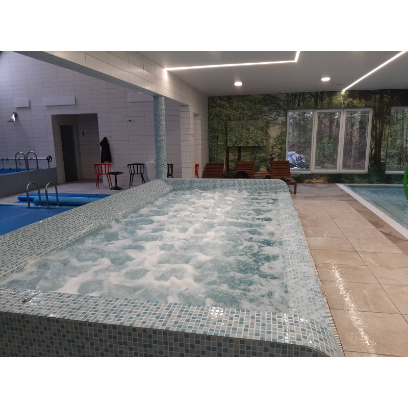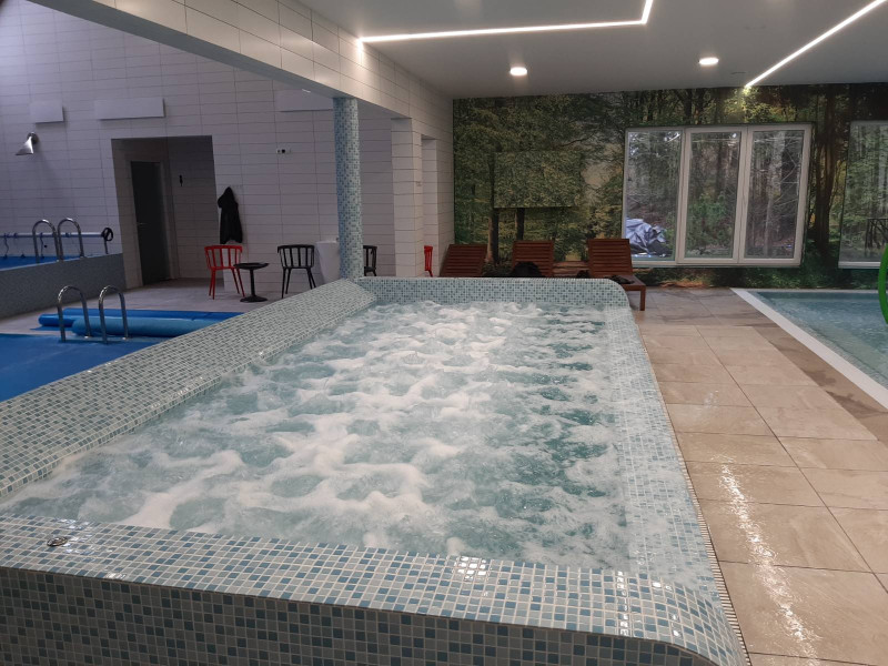 - Două căzi cu hidromasaj pentru relaxare după o saună sau înot în piscină.