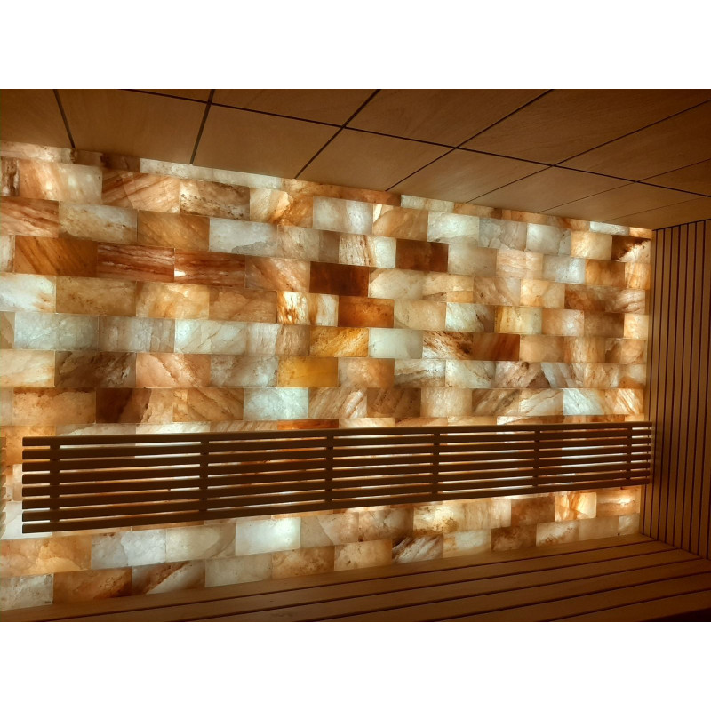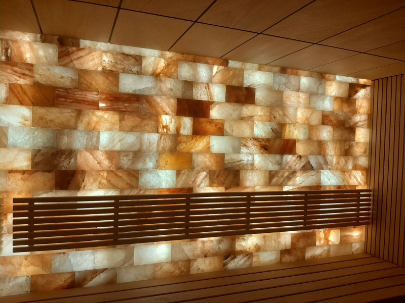 - Sauna de Himalaya - Sarea de Himalaya este una dintre cele mai recunoscute săruri din lume. Sarea de Himalaya îmbunătățește calitatea aerului din interior, reduce simptomele alergiilor și astmului, mărește starea de spirit și oferă energie. Sarea de Himalaya este aleasă nu numai din cauza proprietăților pozitive pentru sănătate. Iluminatul de sub cărămizile de sare de Himalaya a creat un mediu deosebit de confortabil și impresionant.