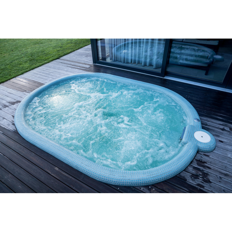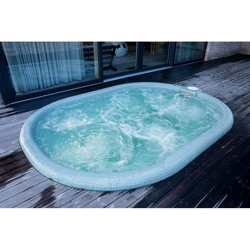 Piscina este dotata cu jeturi de apa de masaj, iluminare subacvatica LED RGB si o perdea pentru a preveni intrarea murdariei in apa piscinei.