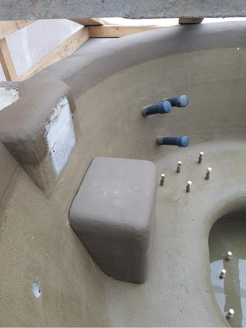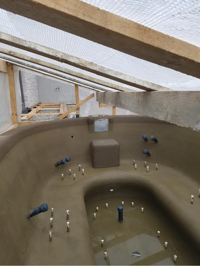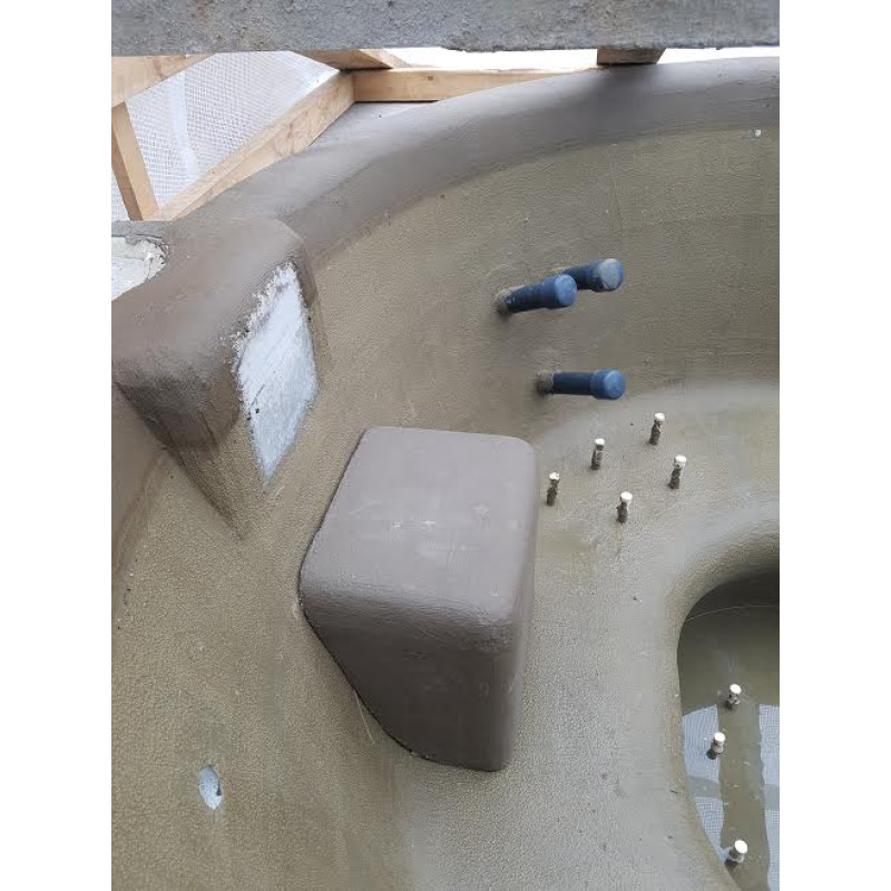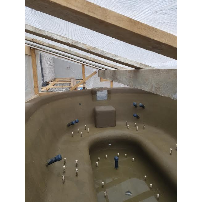 Formele pentru piscina sunt realizate din polistiren extrudat special, la comanda individuala. Interiorul este acoperit cu plăci de mozaic din sticlă zdrobită.