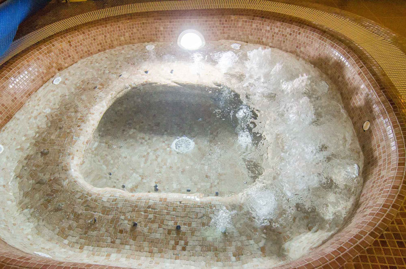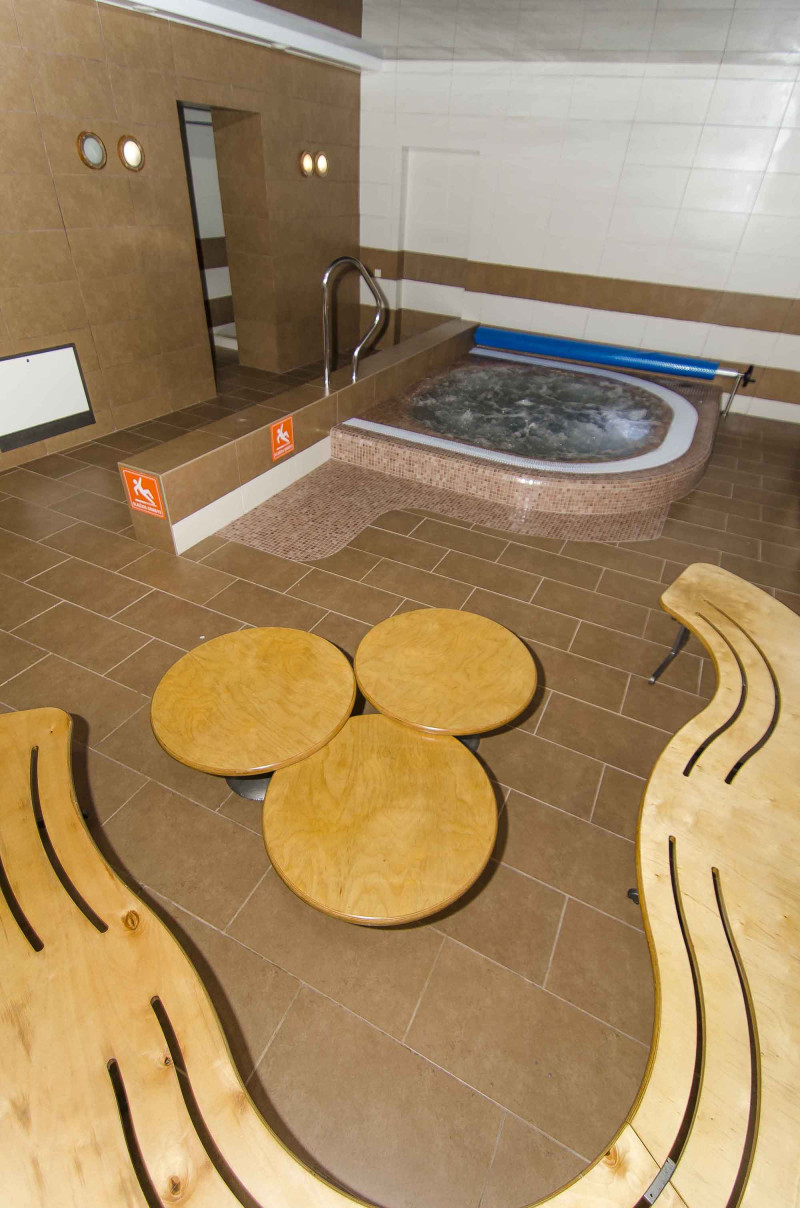 În zona de recreere a unuia dintre cele mai mari hoteluri din Palanga, alături de saune, există o baie cu hidromasaj.