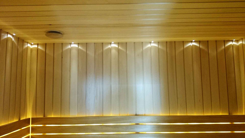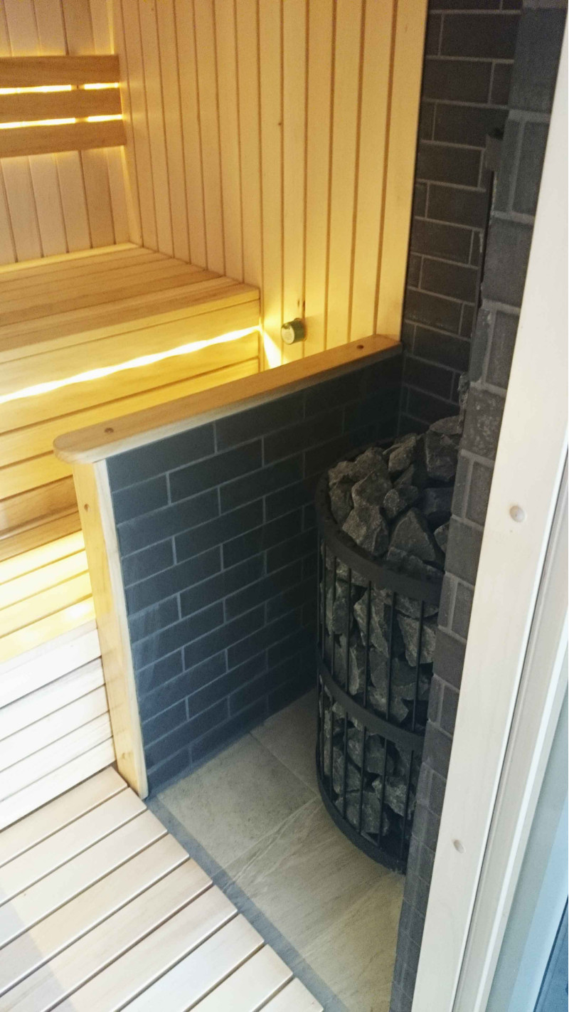 Acest proiect de saună cu un perete de protecție pentru încălzitor. Peretele este realizat dintr-o placa termorezistenta Minerit, pe un cadru metalic.