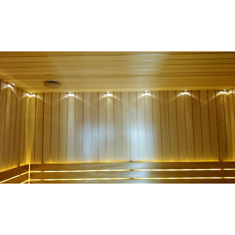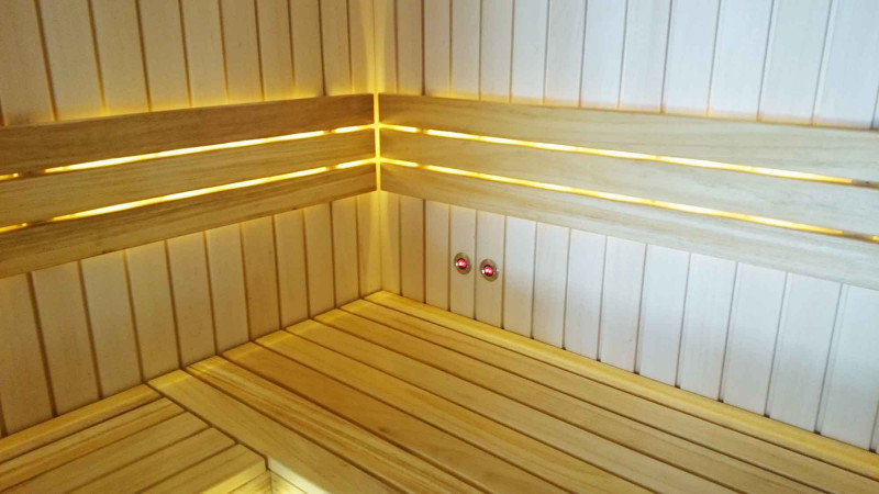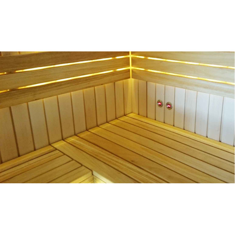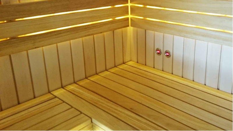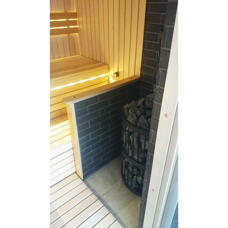 Băncile sunt din lemn de arin negru. Arinul negru nu se încălzește într-o saună fierbinte, așa că este imposibil să se ardă în contact cu suprafața. Din acest motiv, arinul negru este perfect pentru băncile de saună.
