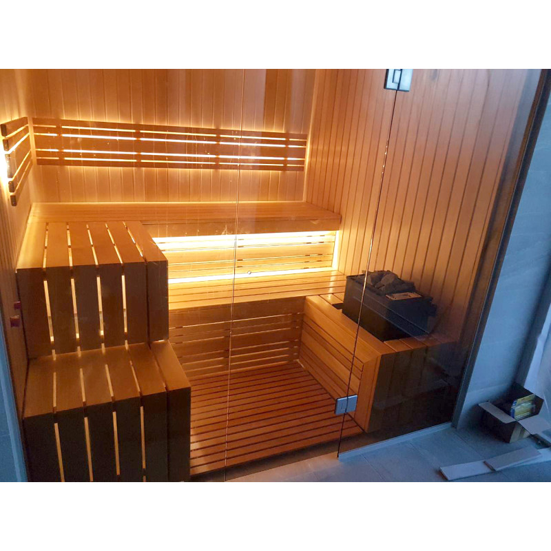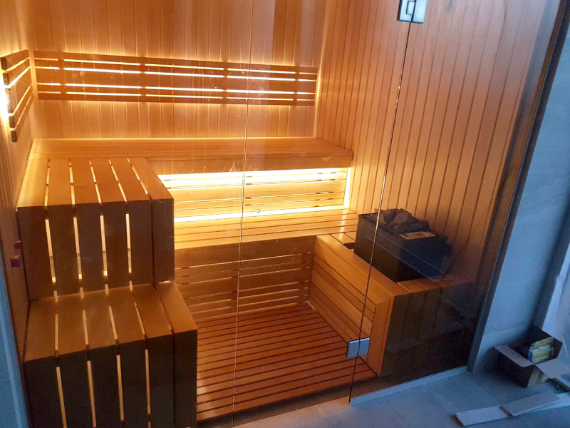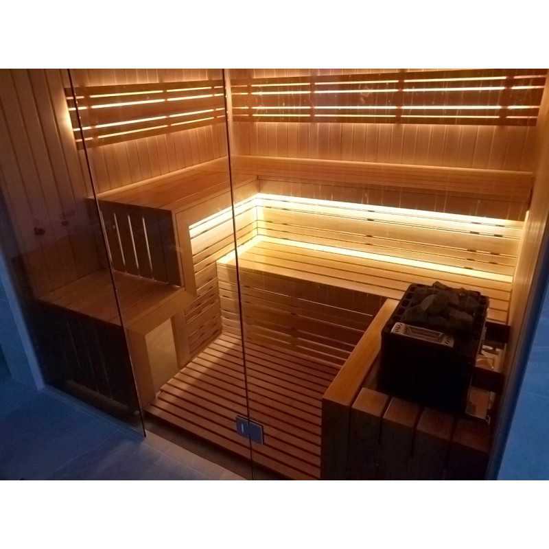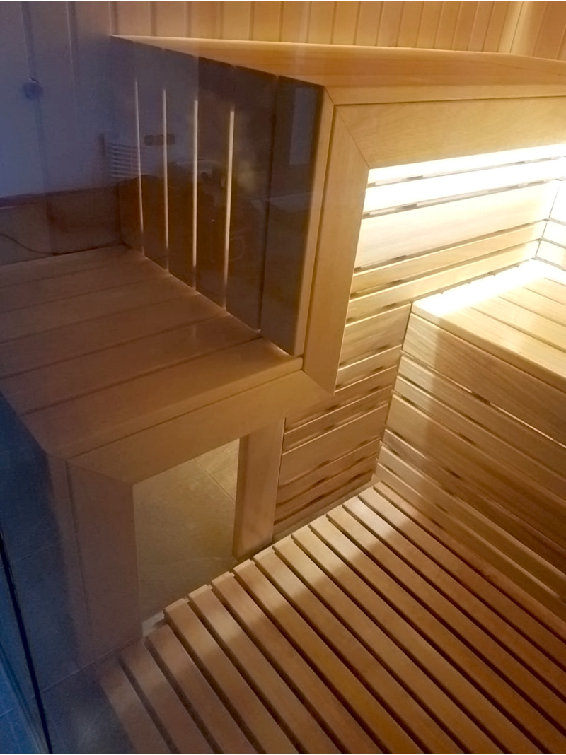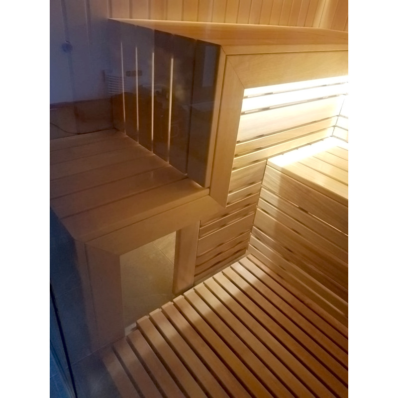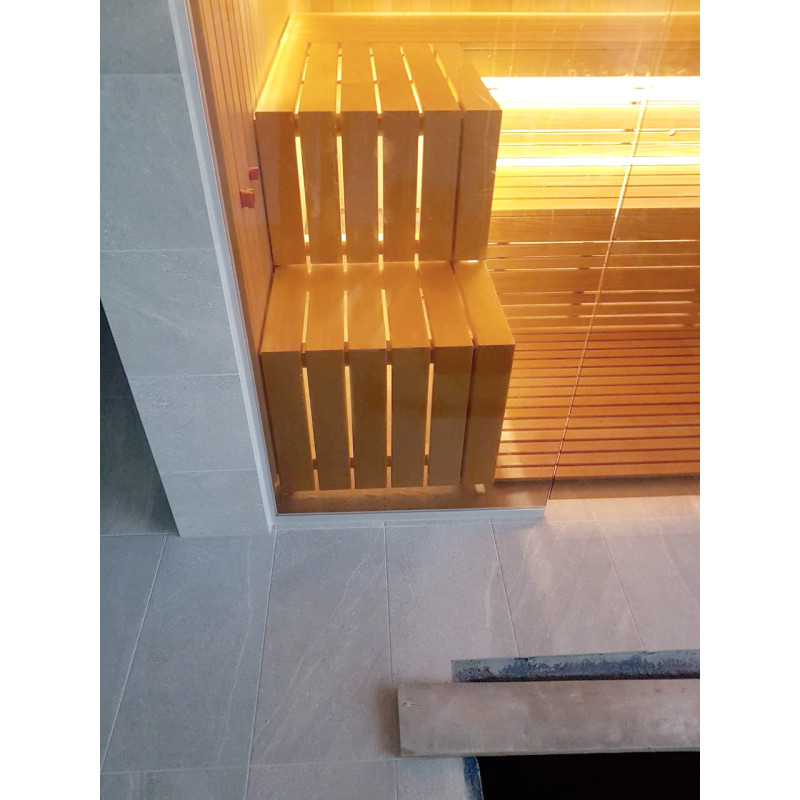 Lemnul de abachi pentru bănci și spătare este o alegere excelentă, deoarece acest lemn de calitate nu se supraîncălzește și este imposibil să te arzi când stai pe bănci din astfel de lemn. Lemnul de cedru ofera si un aspect modern interiorului saunei.