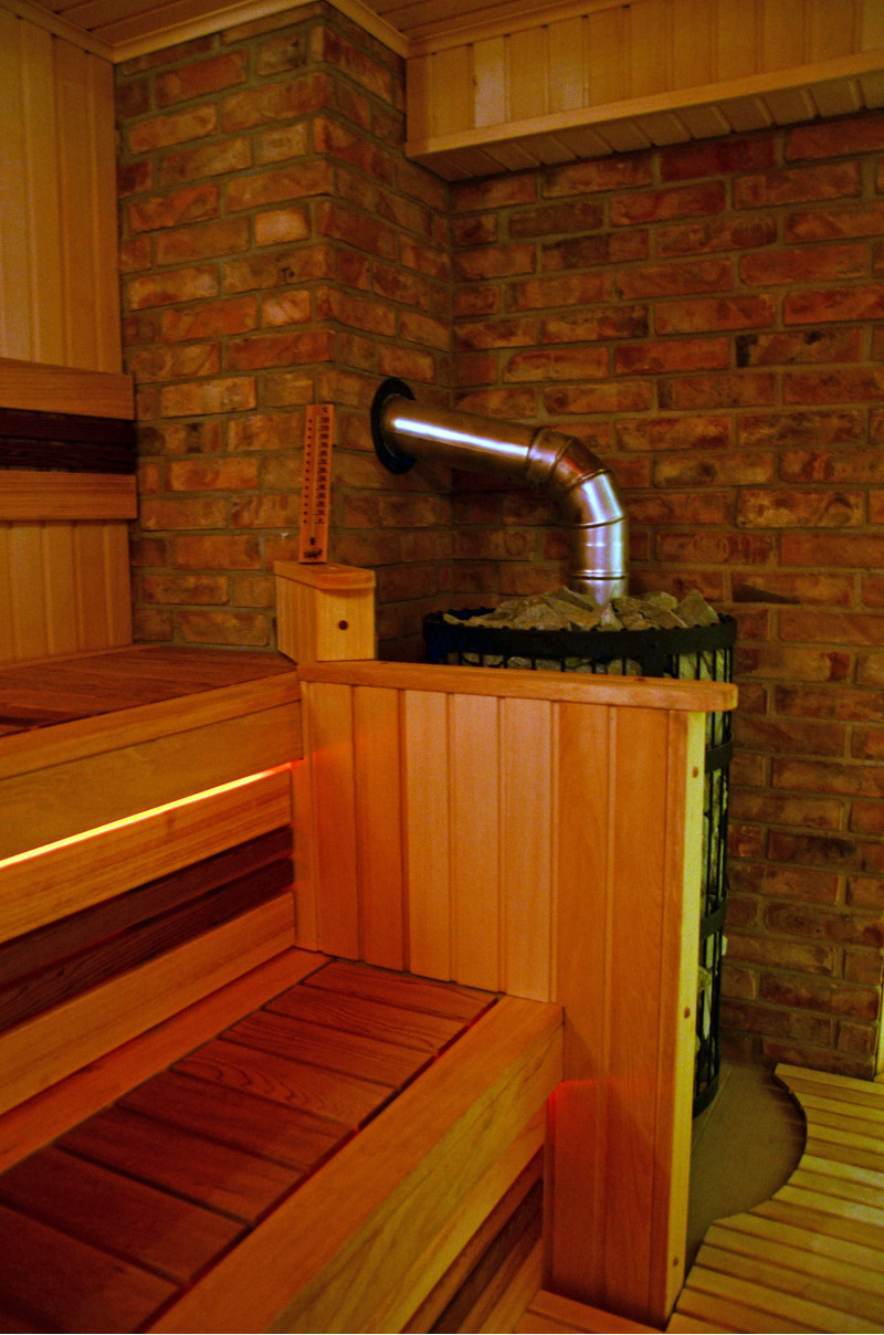 Băncile sunt realizate din abachi african și lemn de cedru canadian. Acest lemn încălzește cel mai puțin dintre toate, așa că este plăcut să stai pe astfel de bănci. Băncile sunt spațioase și este convenabil să faceți plajă în saună, atât stând cât și culcat.