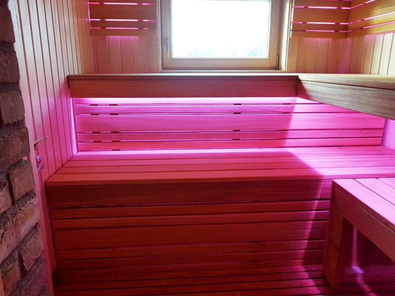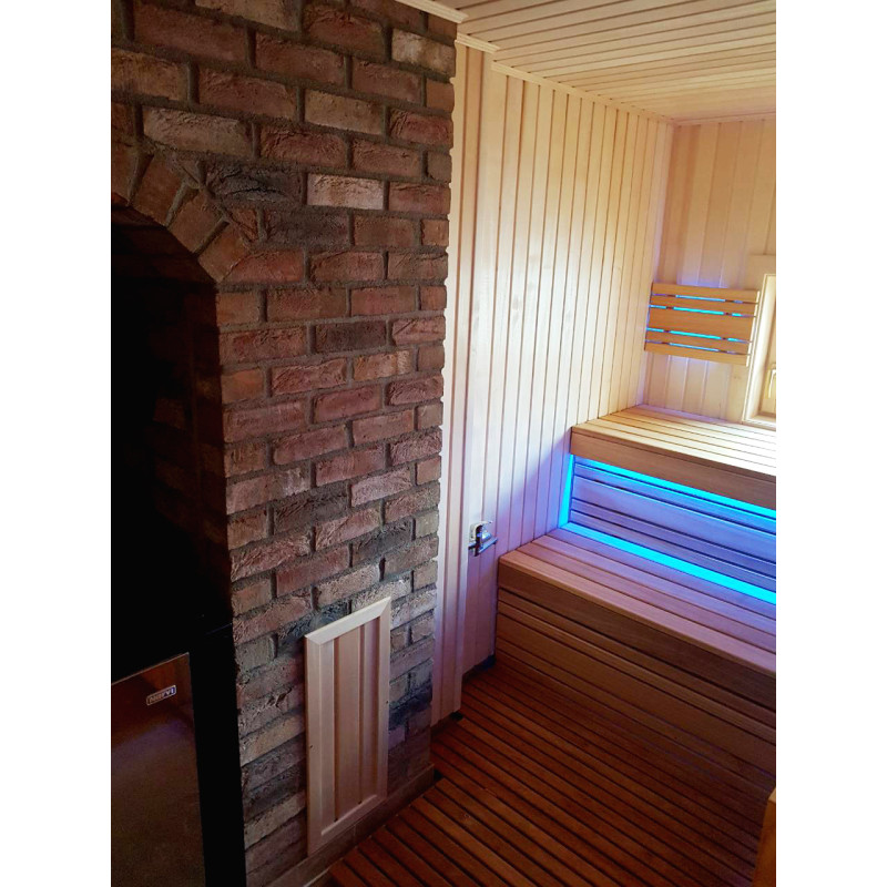 Sauna are si o fereastra care ofera sauna mai multa lumina si spatiu.