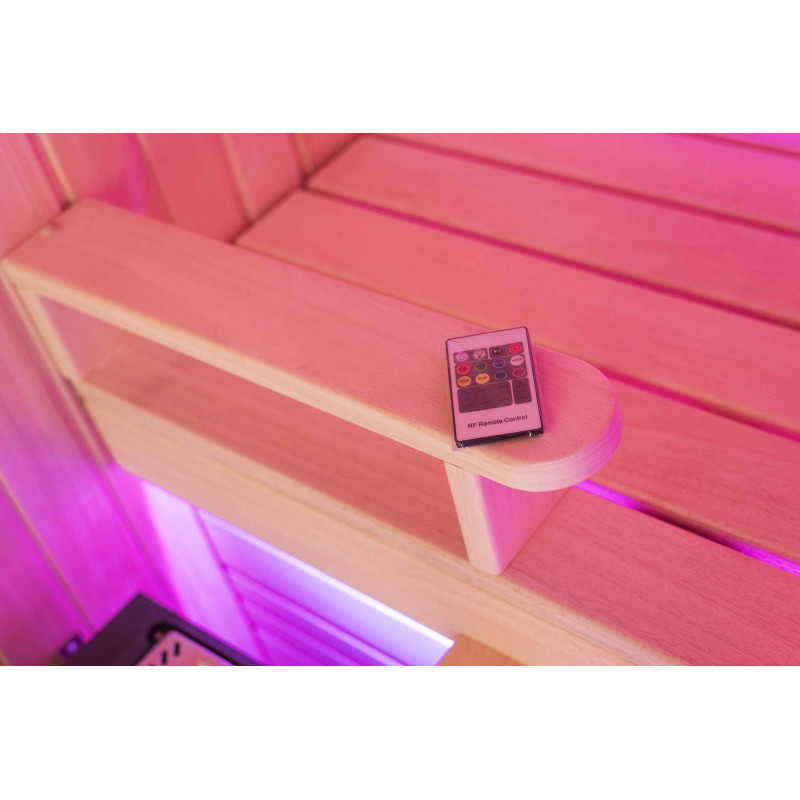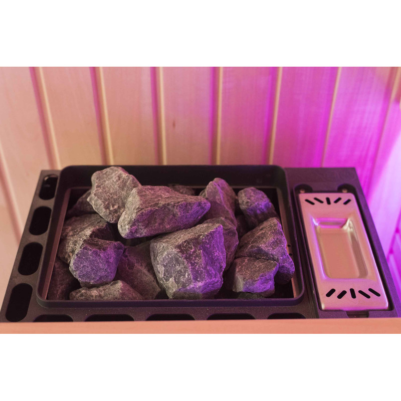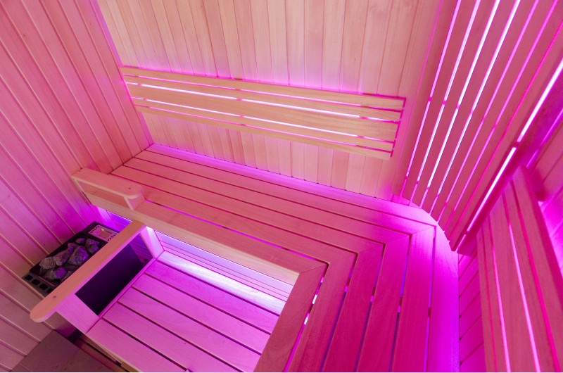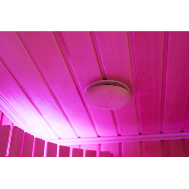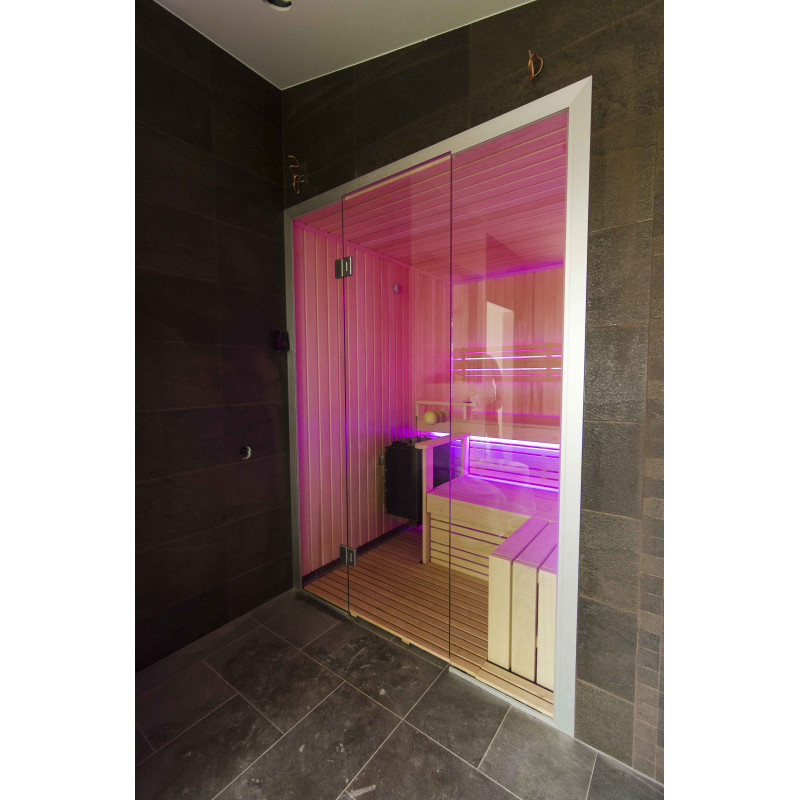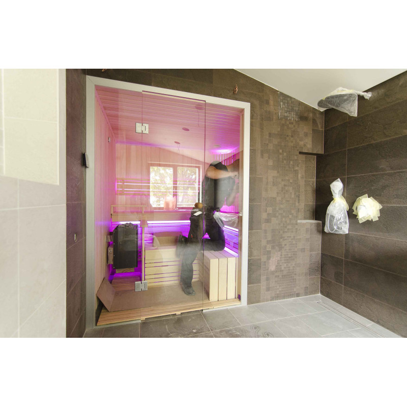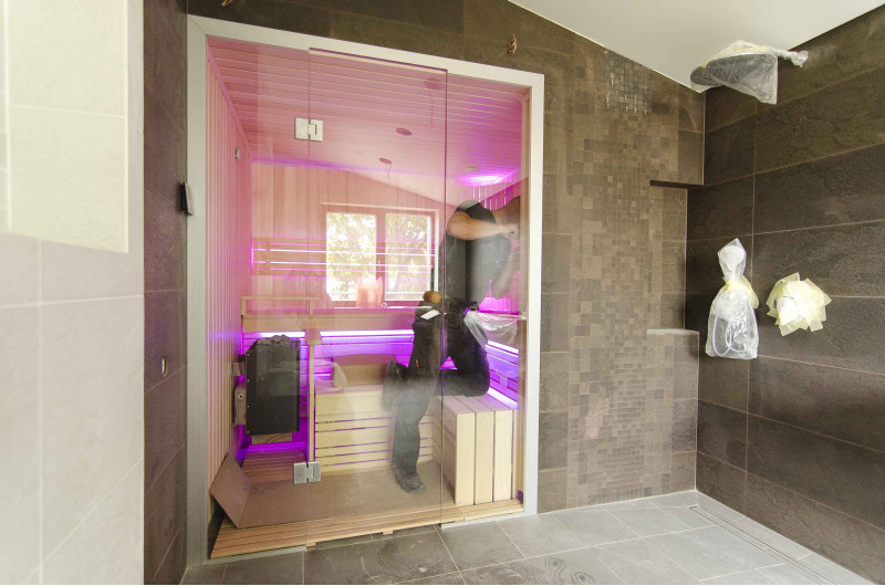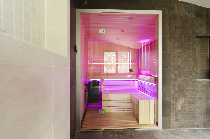 Interiorul saunei este realizat din lemn de tei de cea mai înaltă calitate, șezlongurile sunt din lemn abachi - fără încălzire și perfect pentru saună.