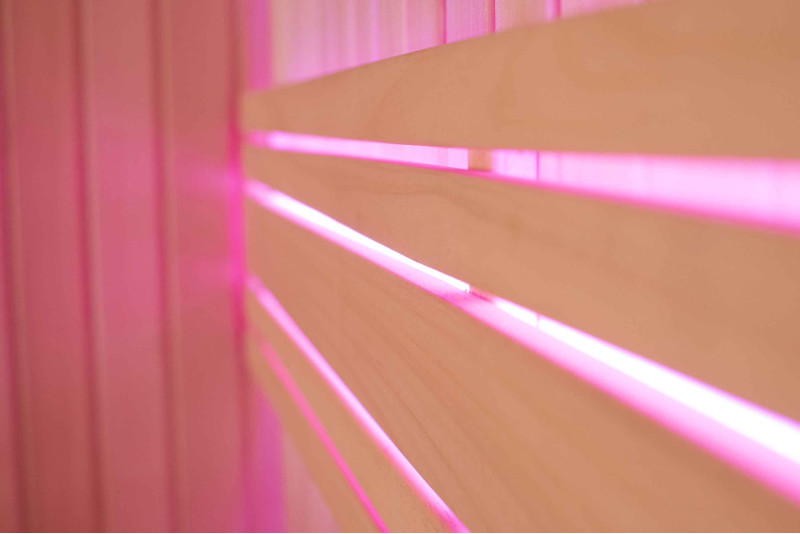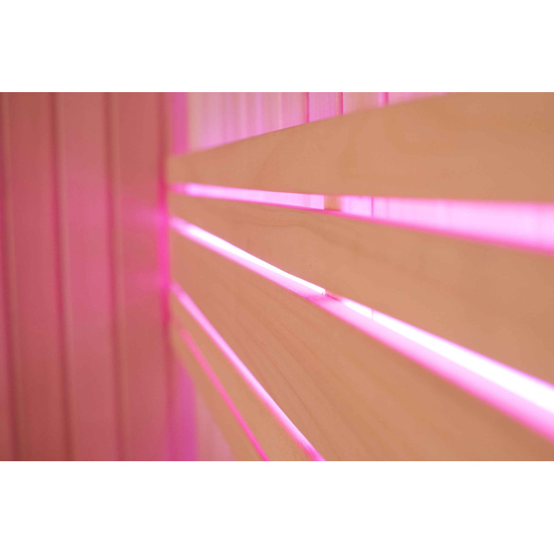 Iluminarea cu LED-uri sub șezlonguri și spătaruri este reglabilă pe panou. Puteți modifica gama de culori și intensitatea manual sau automat.