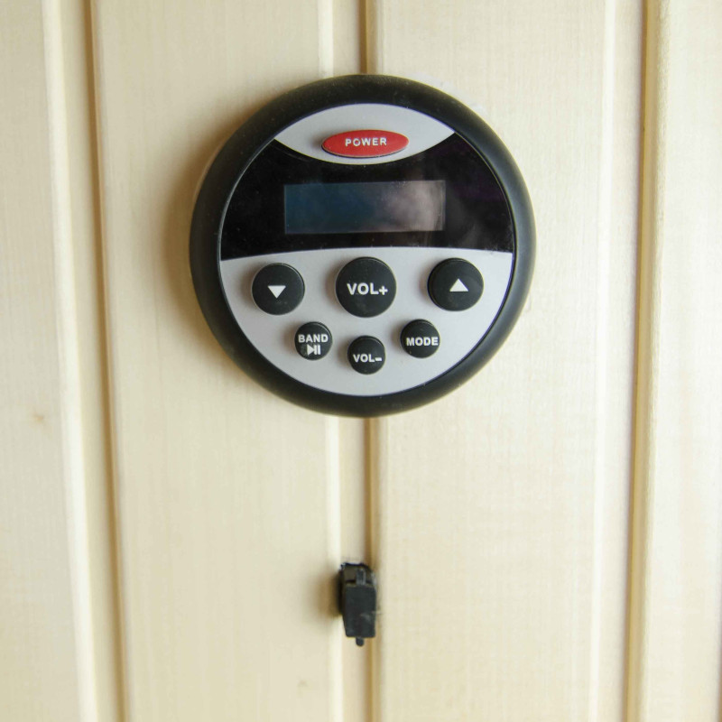 Un proiect modern de saună pentru uz privat a fost implementat în Melnrage. În spațiul băii era un colț pentru plăcerile unei saune de familie. Ferestrele mari ale saunei se deschid spre vederea naturii prin fereastra băii, asigurând o sursă de lumină constantă și mărind optic spațiul camerei de saună nu foarte mare. În plus față de priveliștea minunată, plăcerea saunei este sporită de sunetul - echipament de muzică încorporat. Playerul media este special adaptat pentru a fi utilizat într-o saună fierbinte și umedă. Are conexiune USB, Bluetooth, radio, ecran LCD, butoane de control din cauciuc. Difuzoarele sunt, de asemenea, rezistente la umezeala saunei, coroziunea și temperatura.