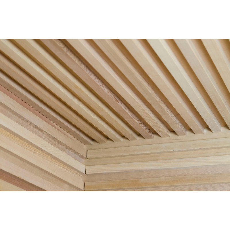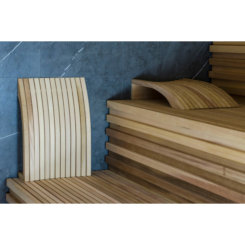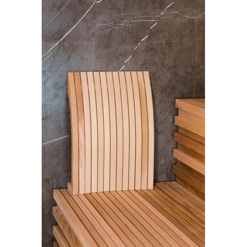 Peretii si bancile saunei sunt realizati din lemn de cedru de cea mai buna calitate, realizat dupa un profil individual. Spătare-perne - lemn de cedru lucrat manual. Acest lemn este de înaltă calitate, nu se încălzește, deci este sigur și plăcut la atingere în timp ce vă bucurați de saună.