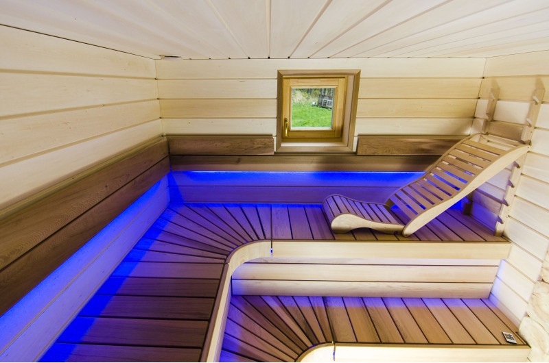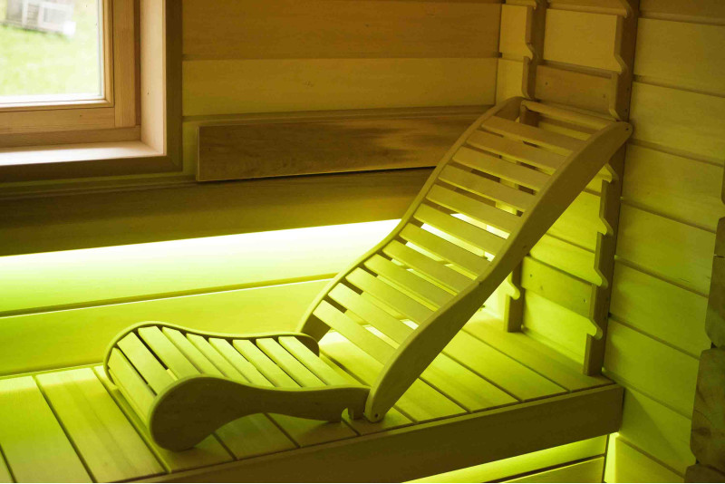 Un detaliu aparte al saunei sunt băncile relaxante lucrate manual. Băncile elegante și stilate sunt realizate din lemn de cea mai bună calitate. Nu numai că oferă un plus de confort interiorului saunei, dar este și deosebit de confortabil, deoarece este posibil să le reglezi înălțimea și poziția pentru o relaxare maximă.