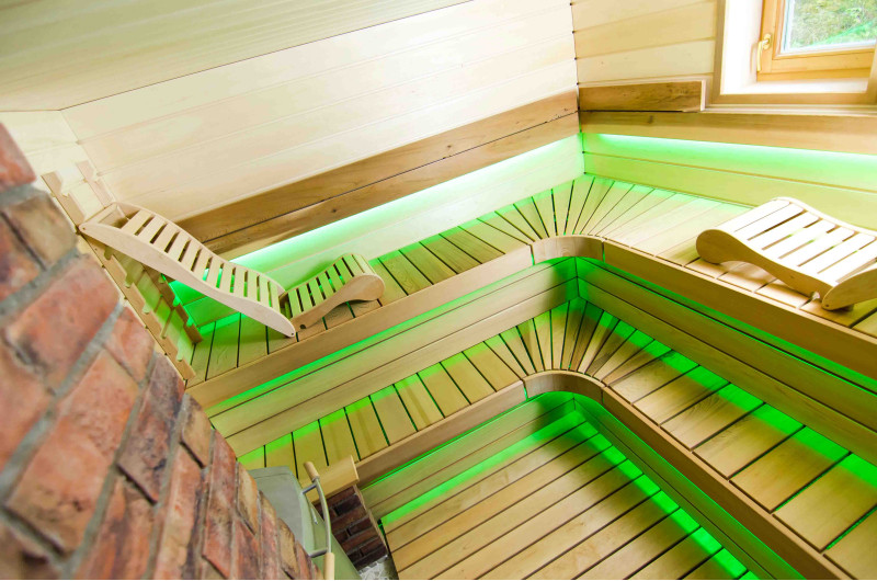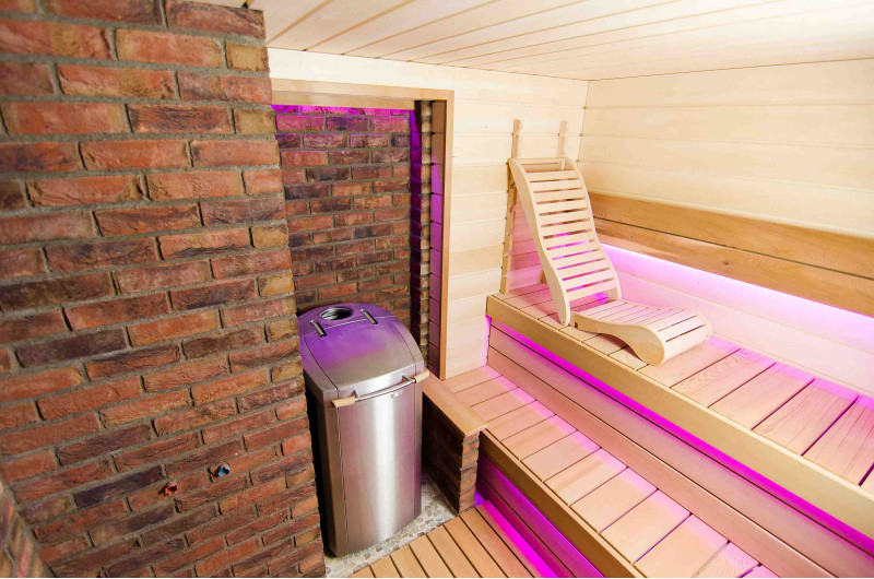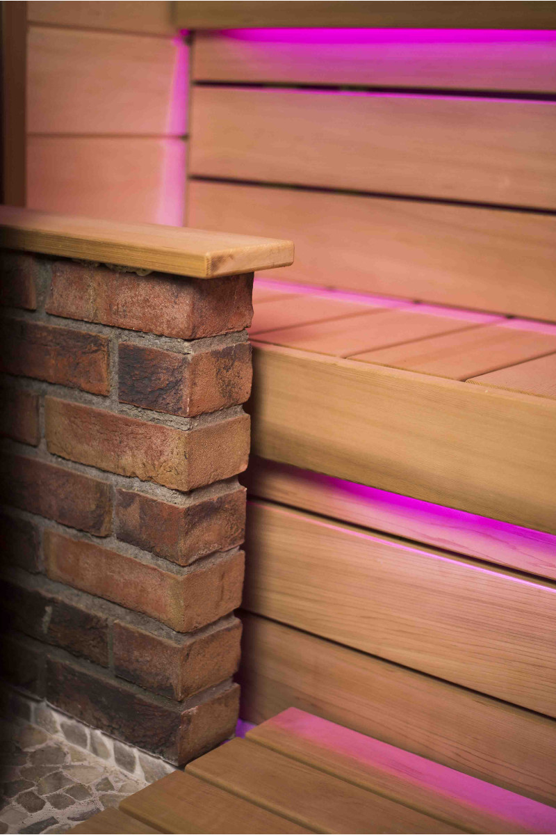 Cărămizile de clincher cu iluminare încorporată sunt alese pentru a decora sauna.