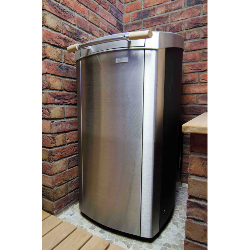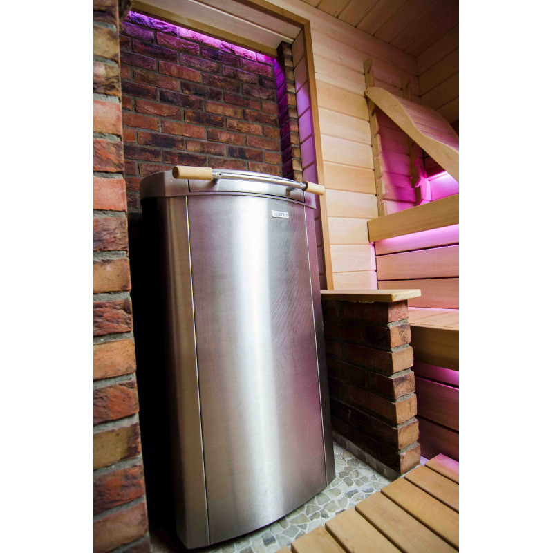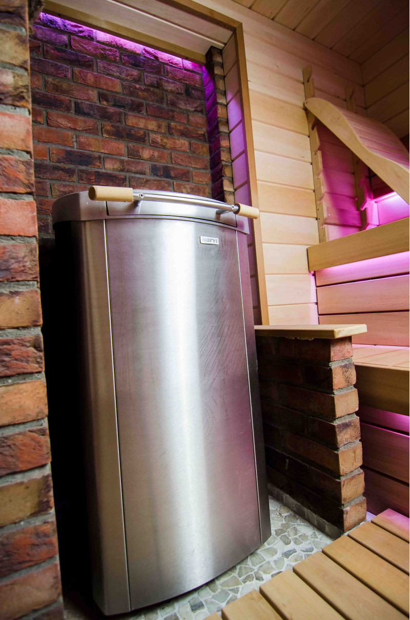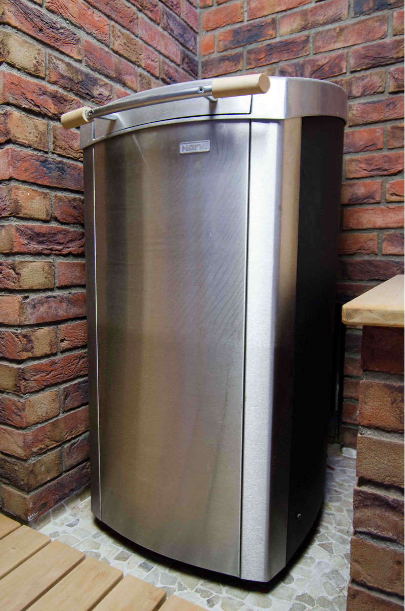 Incalzitorul are un design modern, minimalist - Narvi Steam Master Royal cu semineu exterior. Potrivit pentru utilizare intensivă, dă mult abur. Capota este închisă în timpul încălzirii. Căldura este stocată într-o cantitate mare de pietre (80 kg) sub capotă fără a supraîncălzi sauna și fără a usca aerul. Pe pietre se toarnă apă prin deschiderea capacului. Incalzitorul asigura caldura uniforma si umeda.